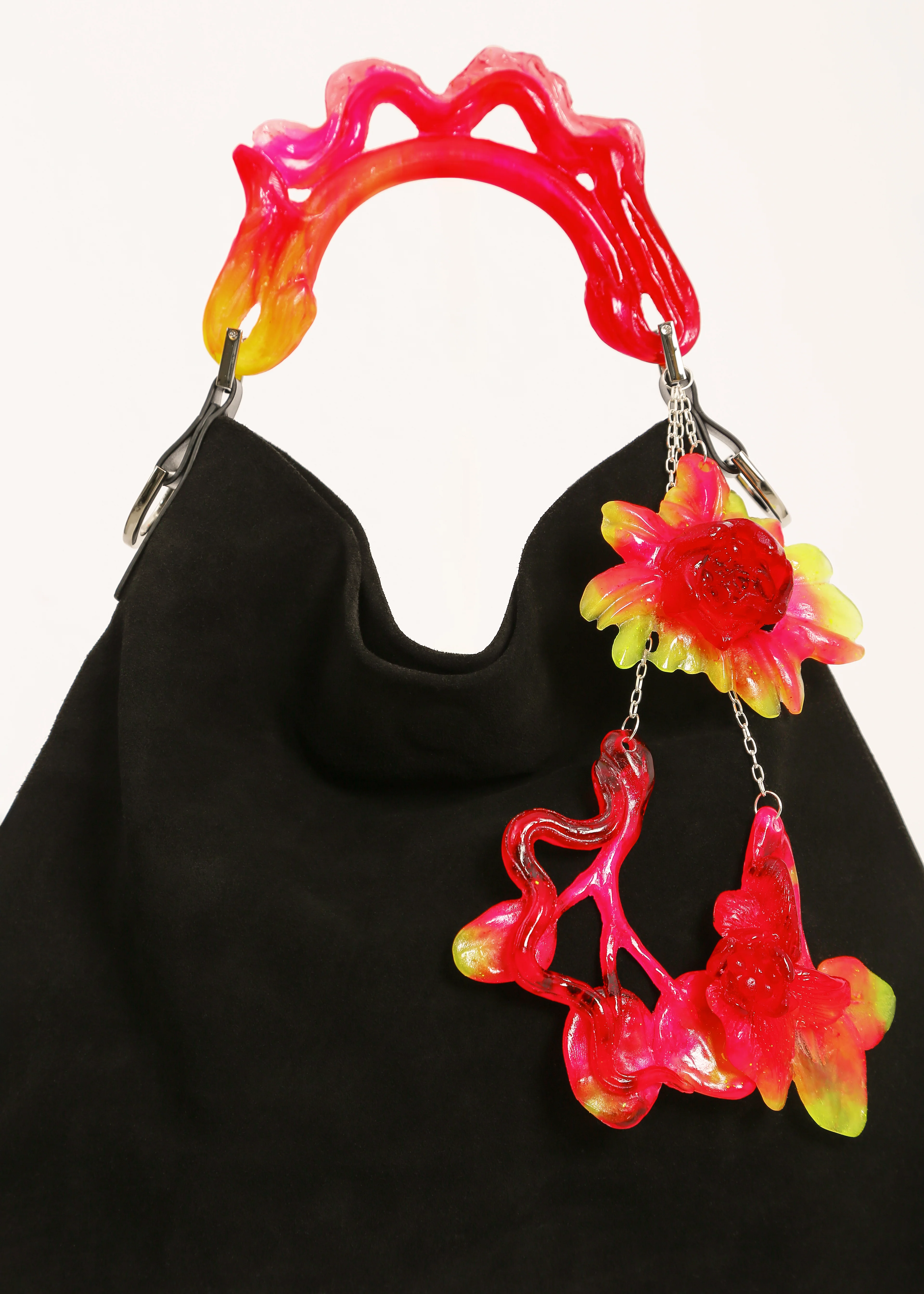 We were delighted to visit Kate Rohde's vibrant art studio the day after she received her works back from an installation at Hermès in Sydney. Stepping into her studio was like entering a kaleidoscope of creativity; every corner overflowed with her mesmerizing resin works, each intricately designed with vivid colors and ornate details. We felt an immense sense of pride at having the opportunity to collaborate with such a celebrated and extraordinarily talented artist on this season's Kate Rohde bag.