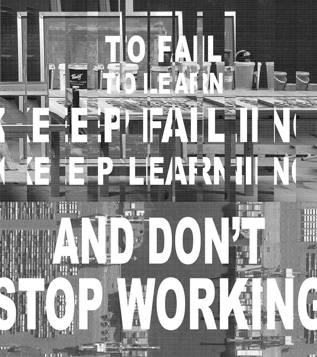 Kay’s art practice is about work itself: the value of it, the effort, the inequality and insecurity of it, especially for artists. Kay developed an artwork which combined her iconic bold text with images of the make-shift silk screen printing studio in Gertrude Contemporary’s basement that Kay worked in during Melbourne’s COVID lockdown and a satellite image of the Melbourne docks where Kay currently works as a stevedore to support her art practice.