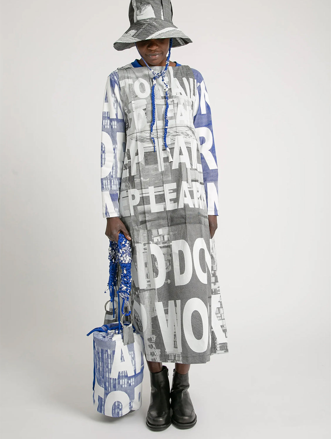The collaboration was locally manufactured in The Social Studio Collingwood workshop – a studio which provides learning opportunities for Melbourne’s refugee and new migrant communities in fashion and arts. Ugly Cute Collective by Michelle Phan (who also works at TSS) designed a bag as a part of the collaboration. Michelle utilised the waste material from the dress and top production to create a series of one-of-a-kind bags which have all been hand sewn and braided, and also utilised production off-cuts to craft straps for the limited-edition hats.