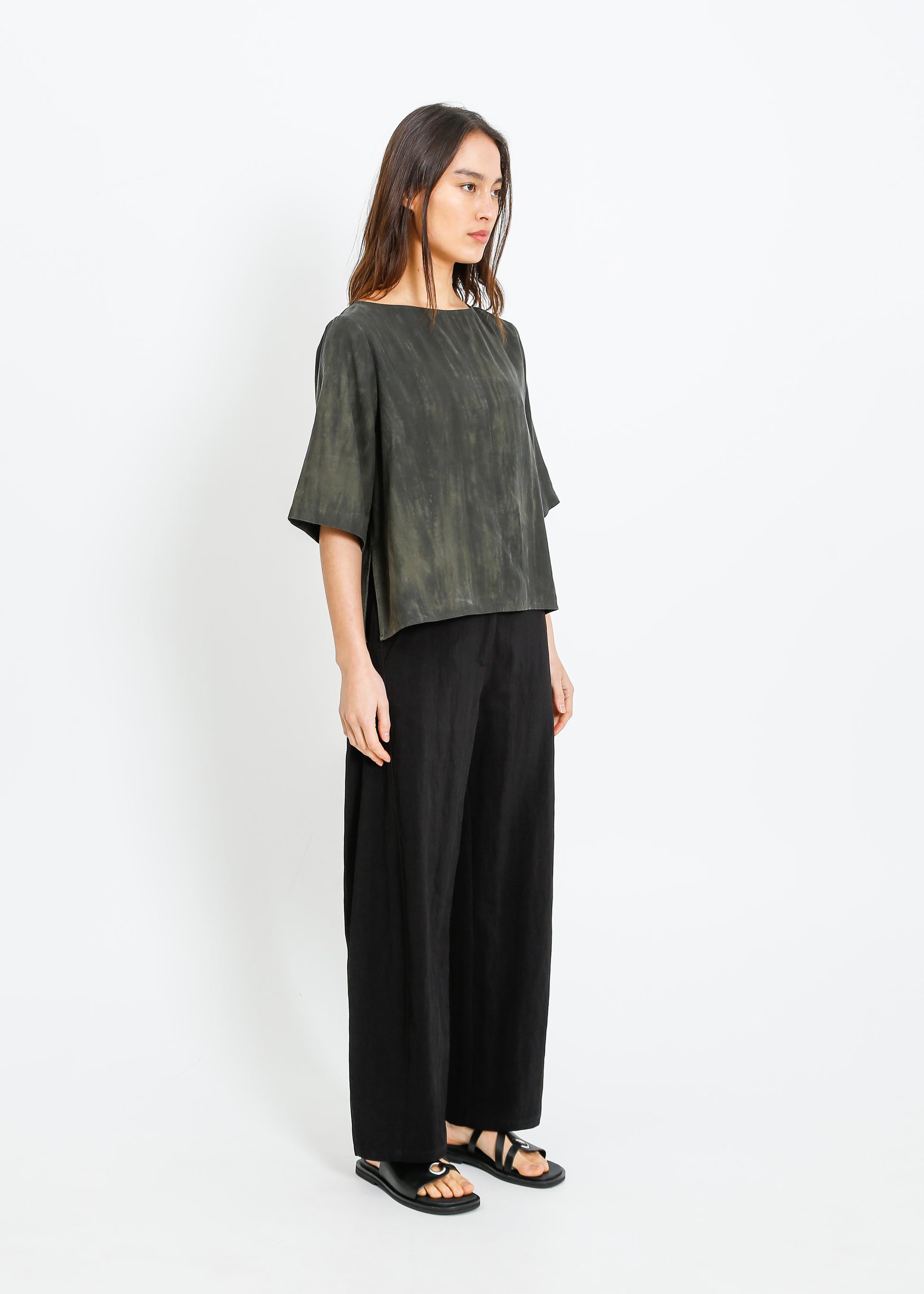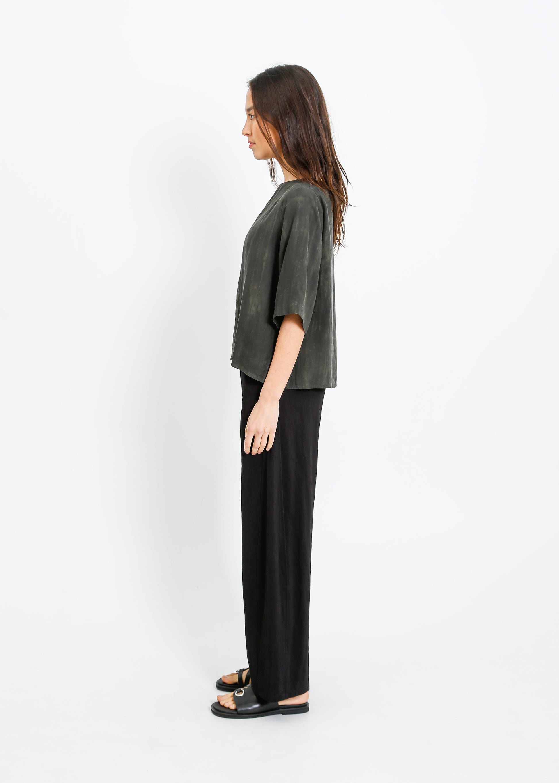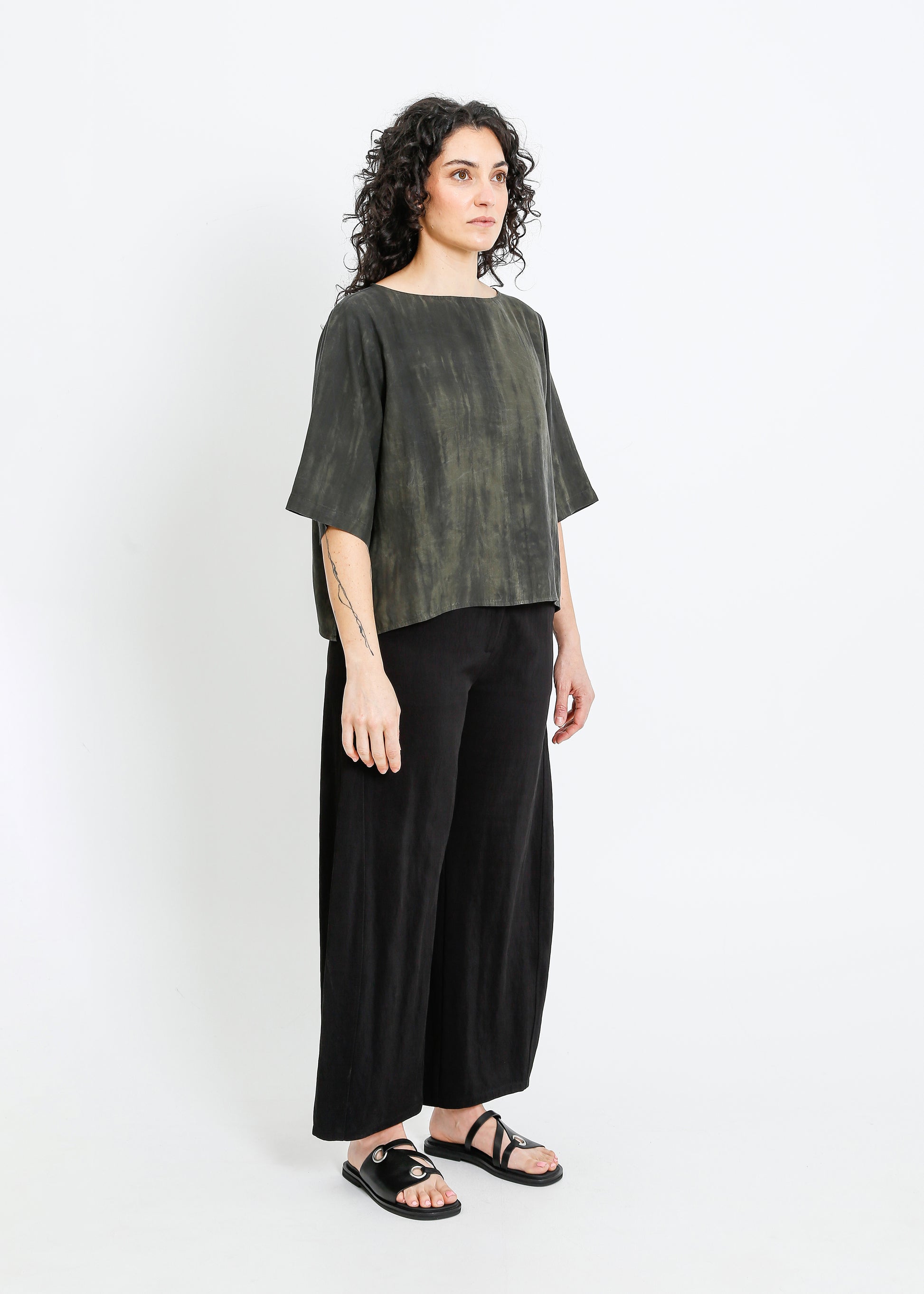 The ALPHA60 Daisy Tee has a boxy silhouette and is cut in a soft washed khaki. The style has set-in sleeves that are cropped at the elbow, a wide boat neckline and is complete with side seam...