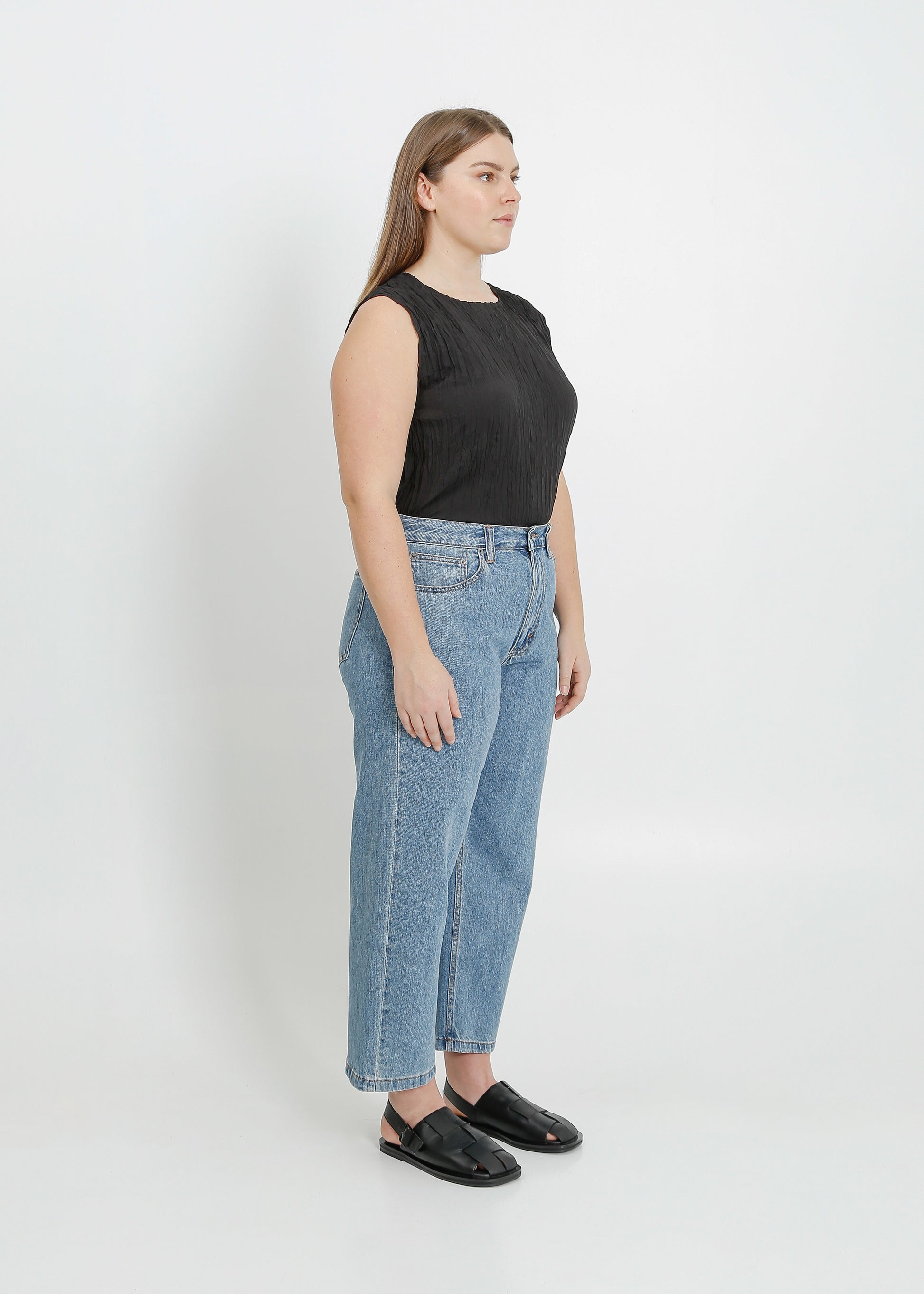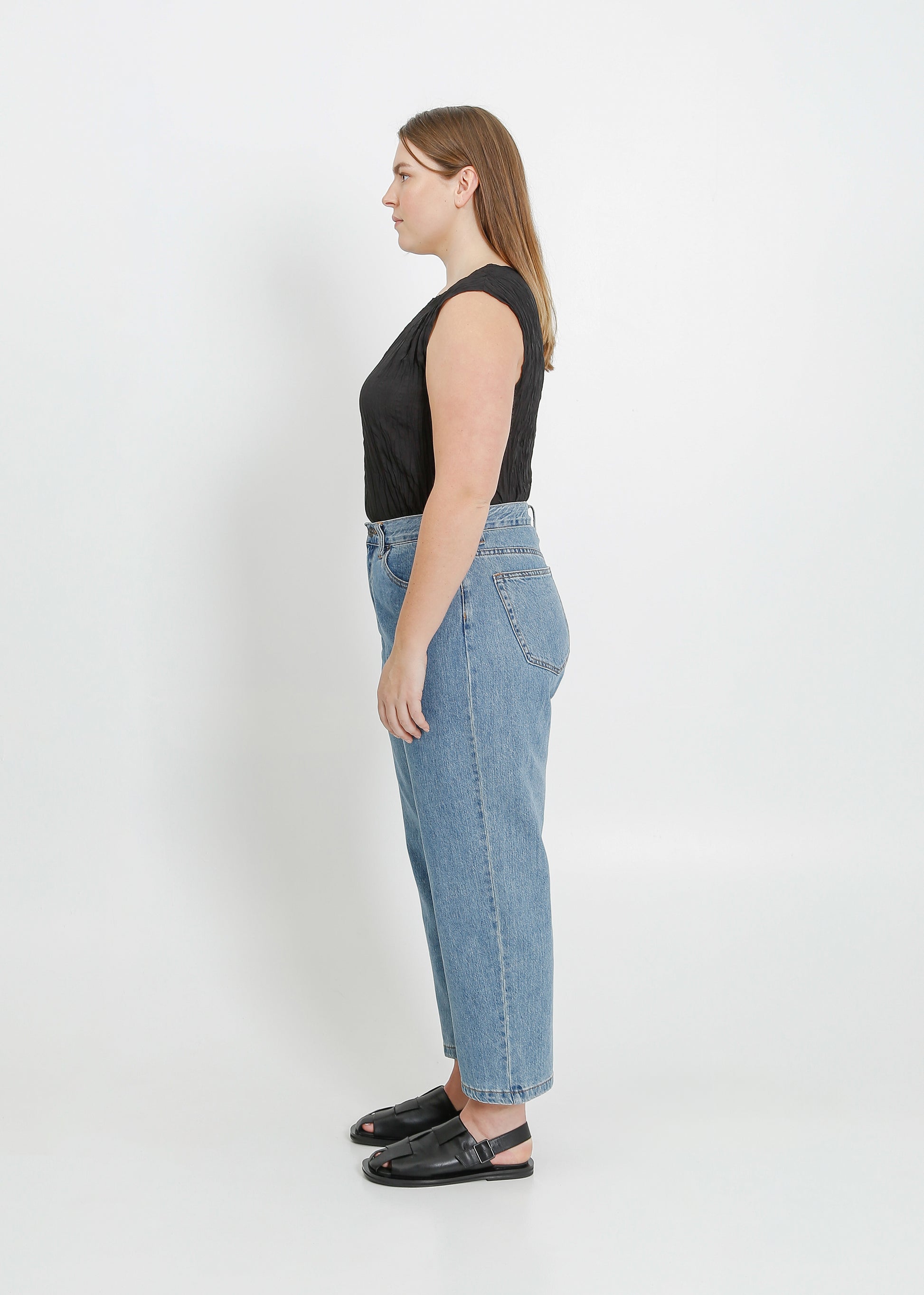 - Straight cropped leg profile