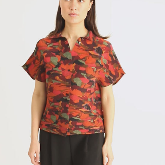 MAZIE PLEAT SHIRT / PEONY PARADE