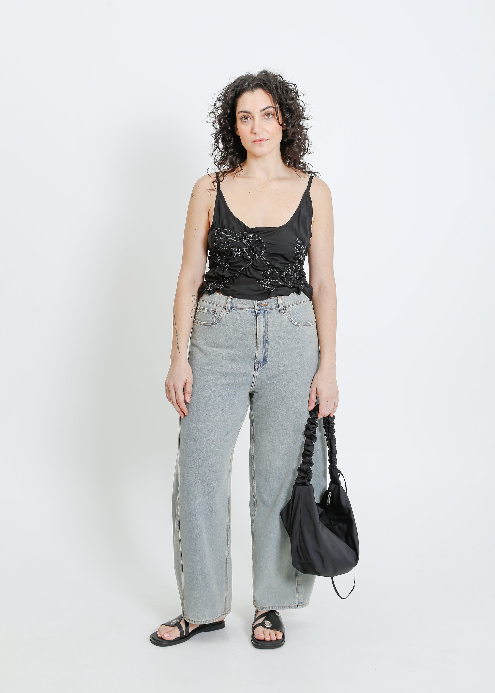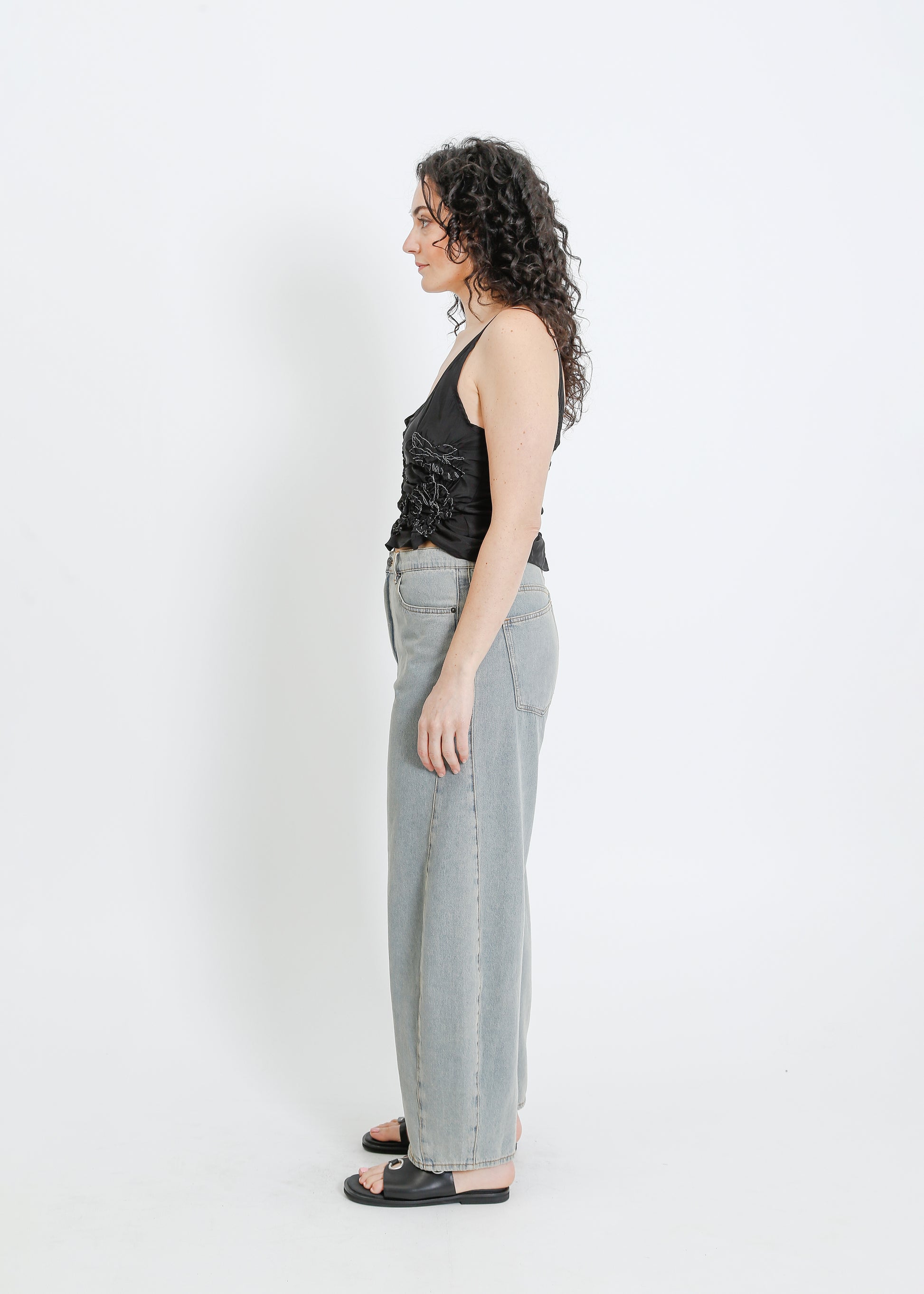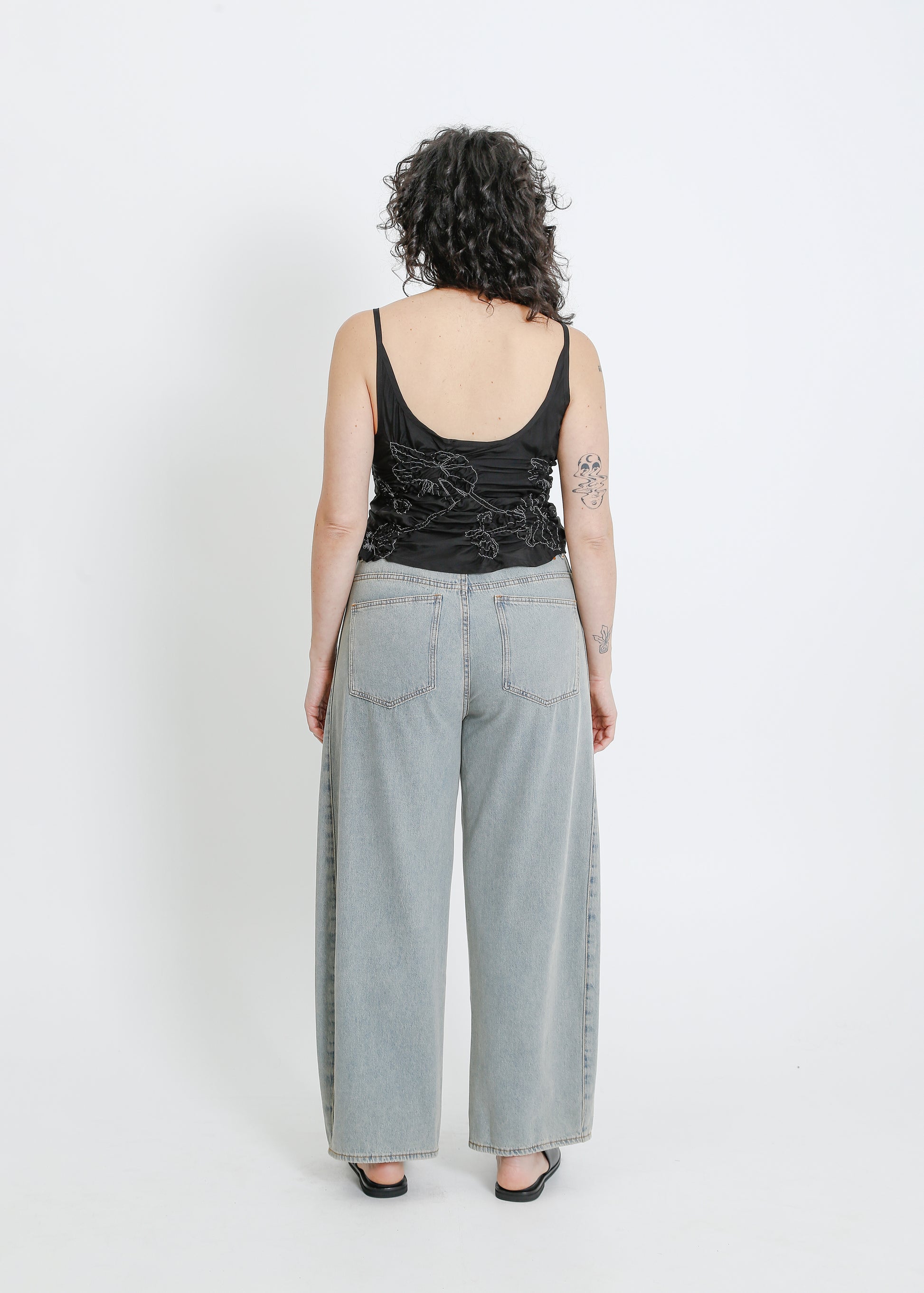 - Waist 40cm / Low hip is 53.5cm / Inner leg length is 73cm / Outleg length 100cm / Front rise is 29.5cm / Back rise is 39.5cm. Garment measures are taken flat on size S. Body width is graded 2.5cm between sizes.