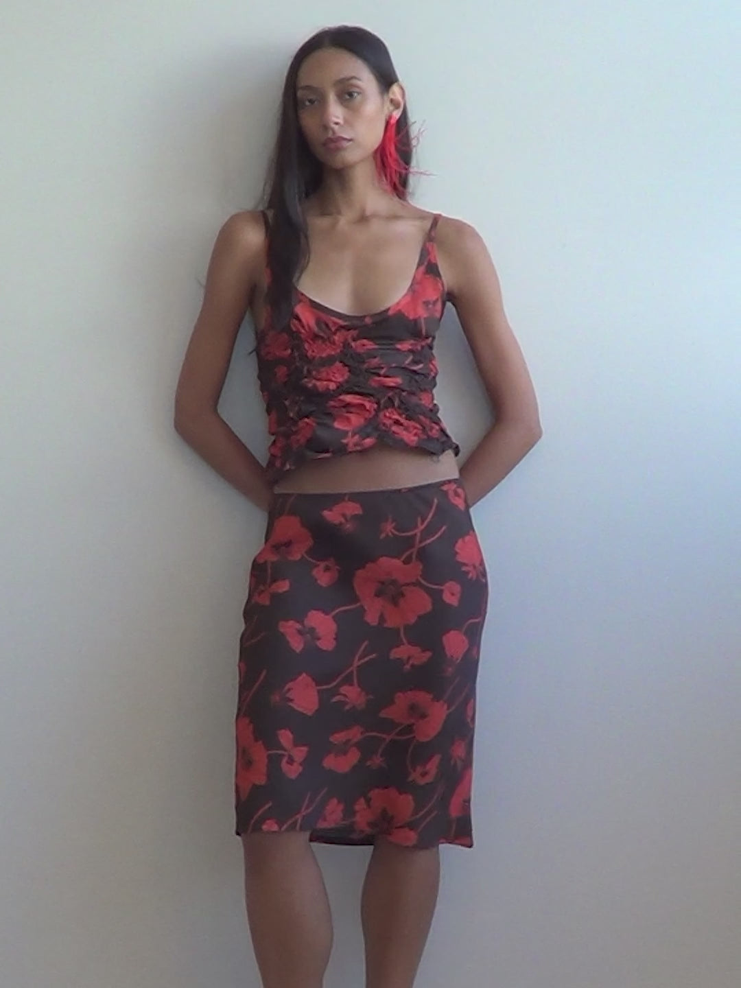 Van Slip Skirt / Fragile Blooms - Chocolate-poppy