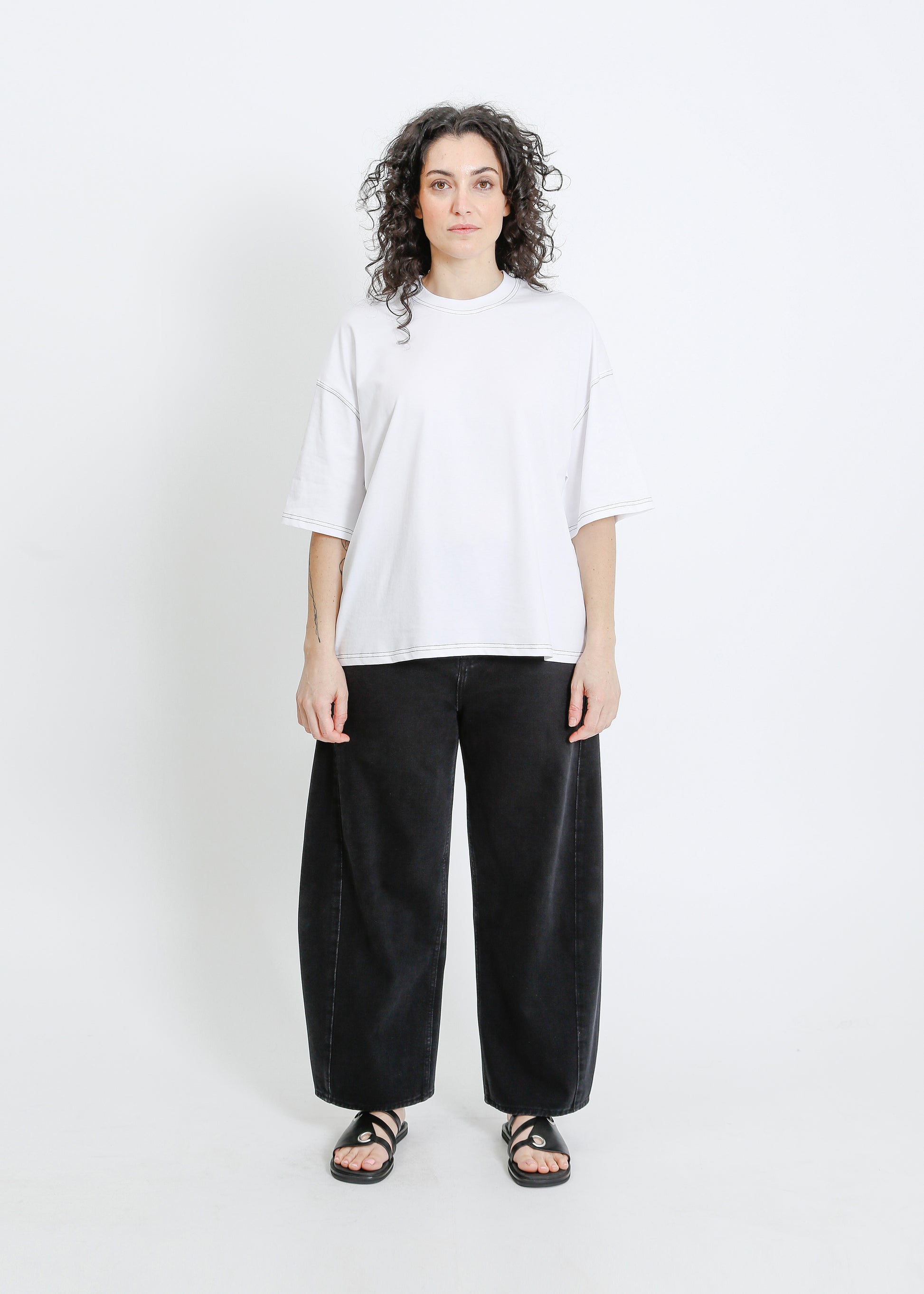 The ALPHA60 Ronnie Oversize Tee in White is a modern take on the classic t-shirt, featuring a relaxed silhouette and rib collar. Crafted from premium cotton, this tee offers comfort and vers...