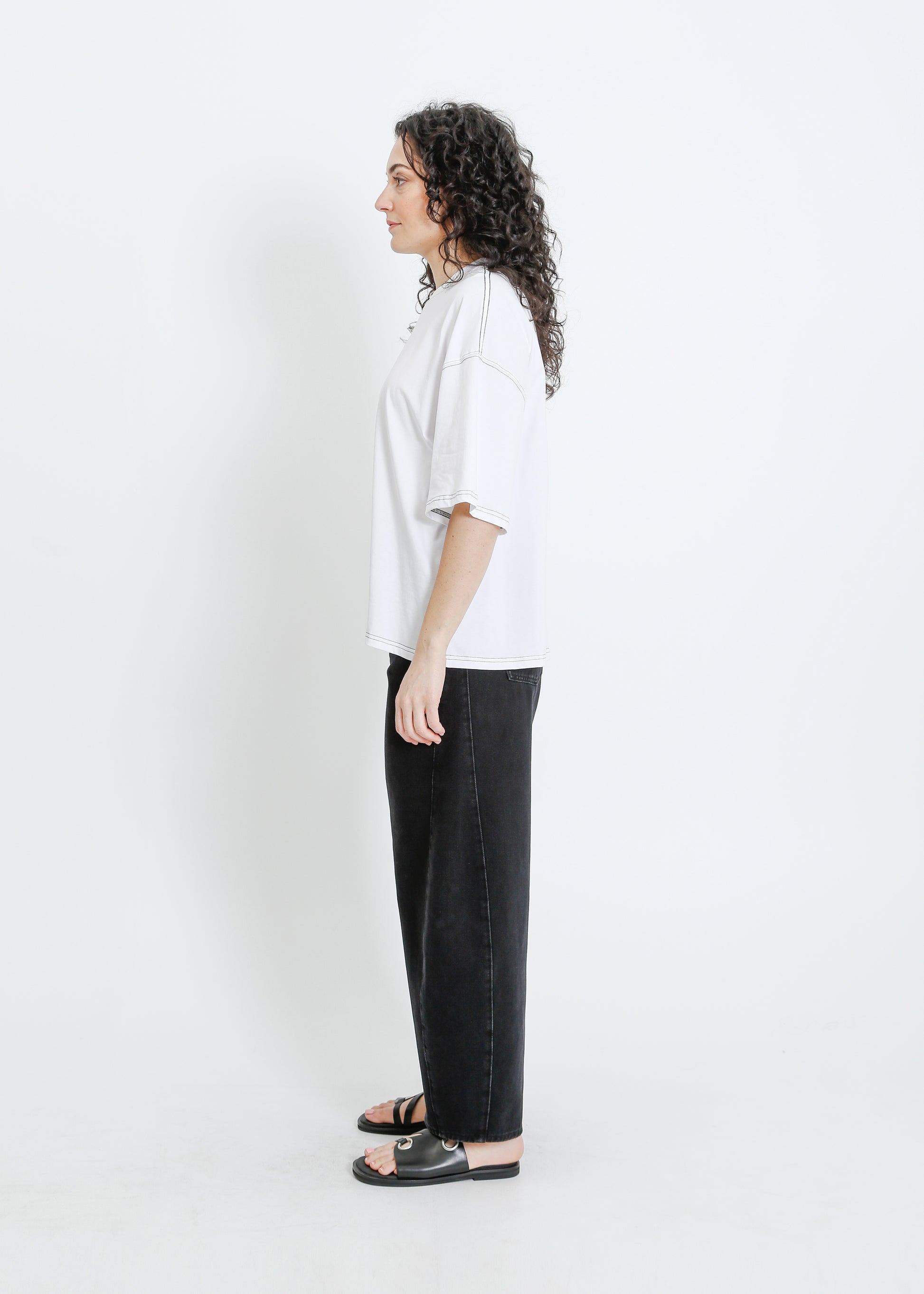 The ALPHA60 Ronnie Oversize Tee in White is a modern take on the classic t-shirt, featuring a relaxed silhouette and rib collar. Crafted from premium cotton, this tee offers comfort and versatility, making it a wardrobe staple for effortless everyday style.