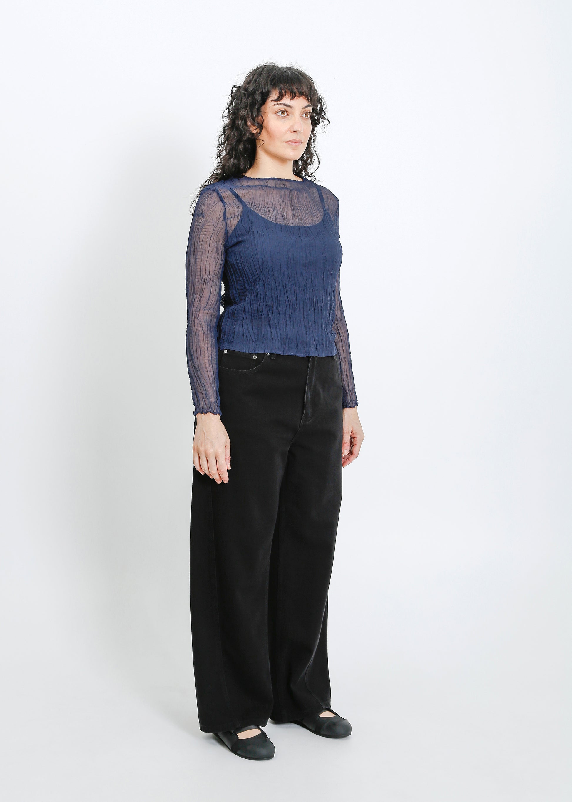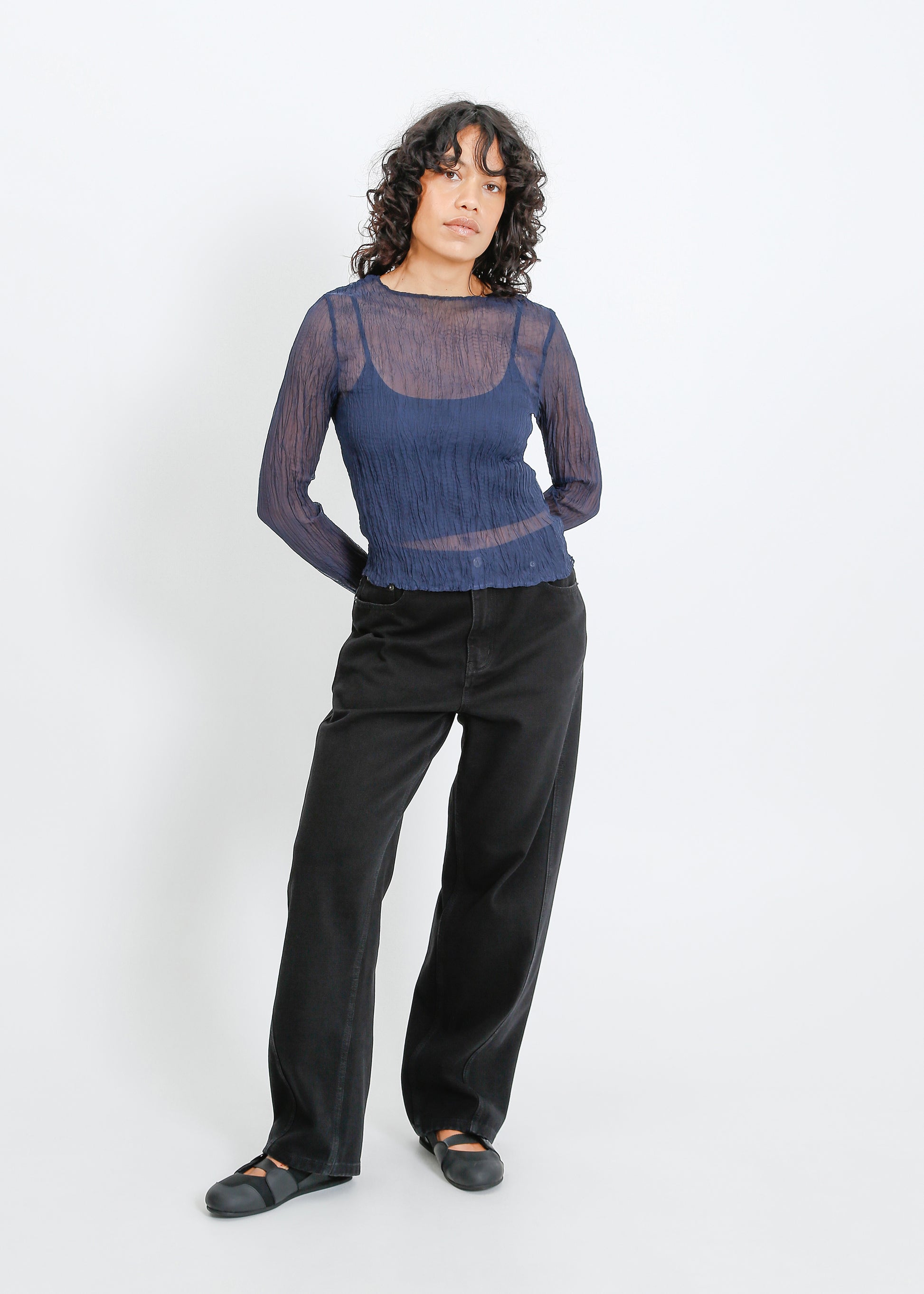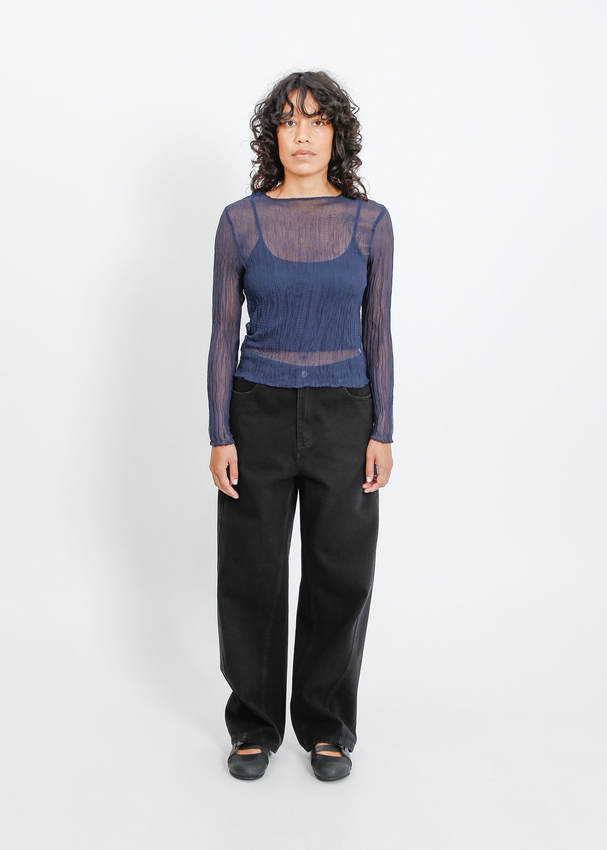 Shaun Pleat Top / Navy