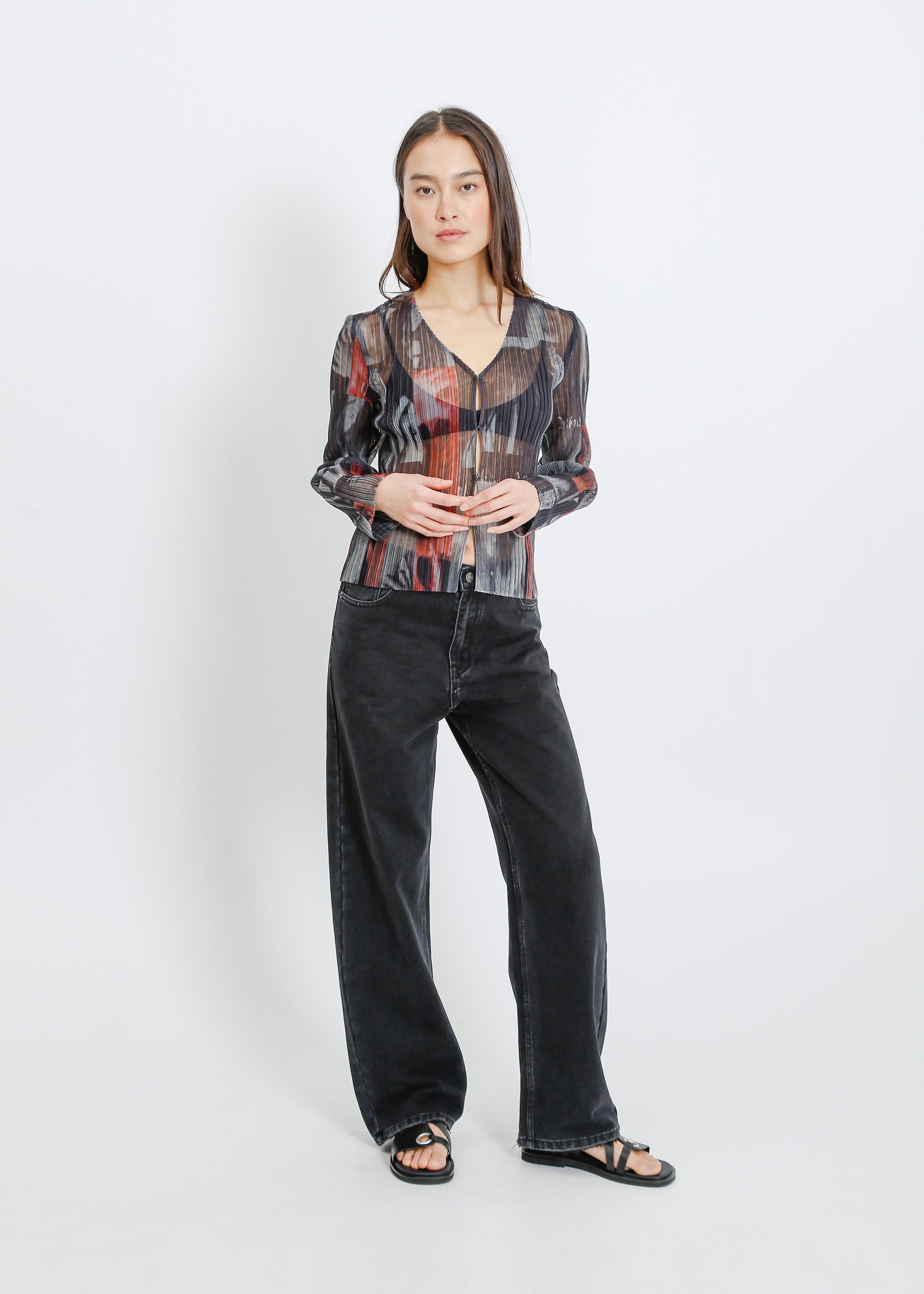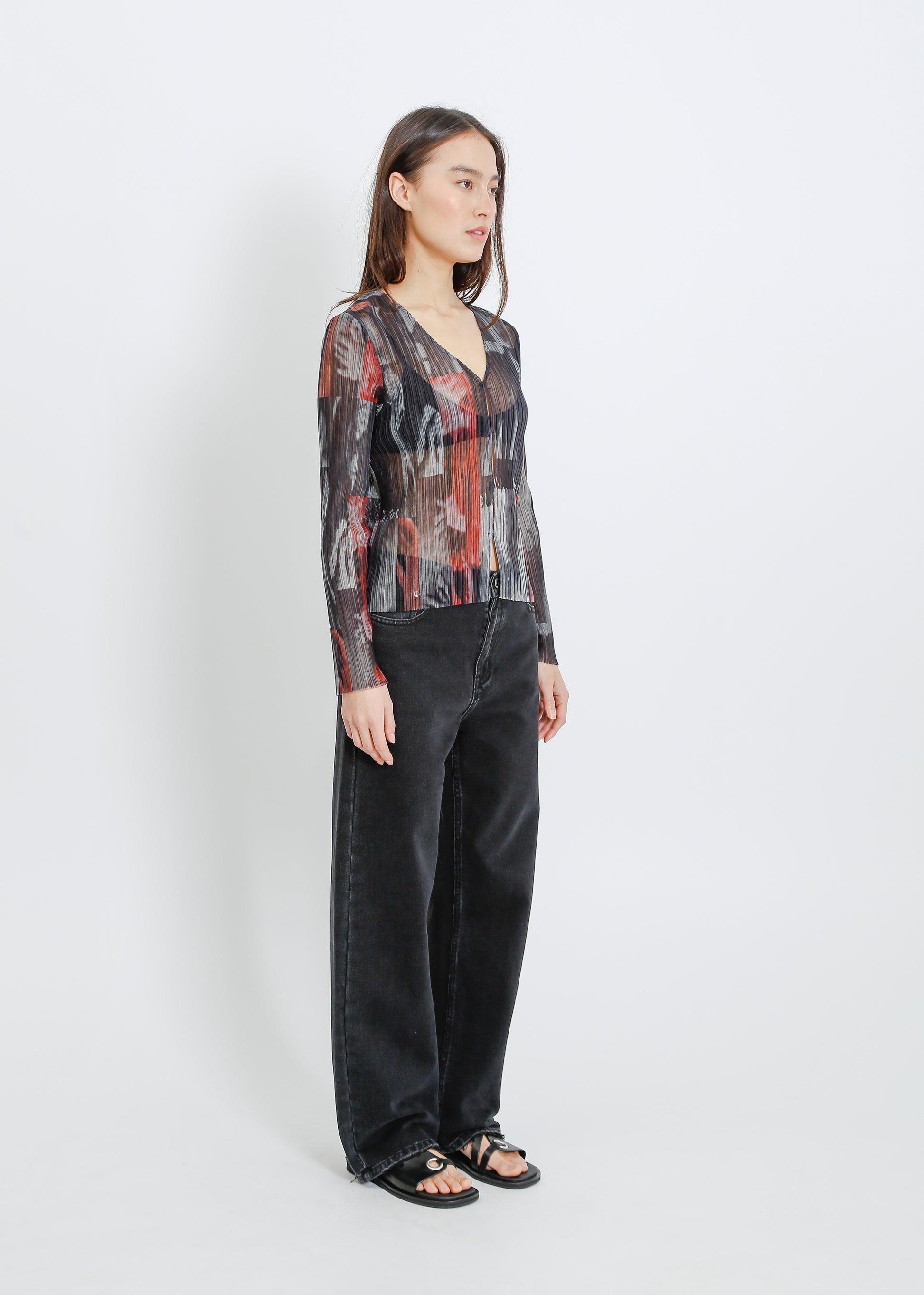 The ALPHA60 Enzo Pleat Cardi is a statement pleated top crafted in a permanently pleated mesh fabric, featuring a V-neckline and long sleeves. Fully lined and sheer, this piece is designed w...