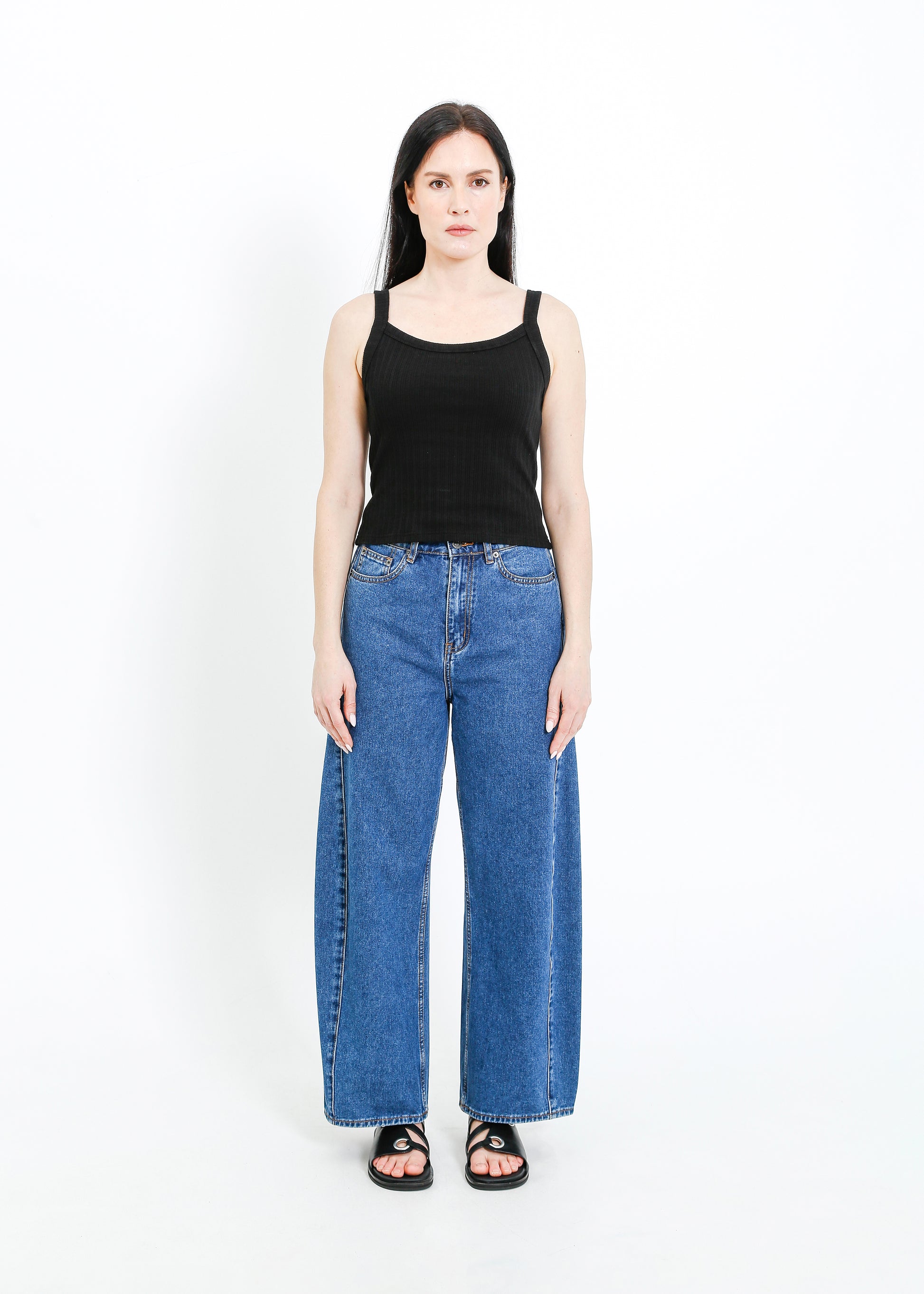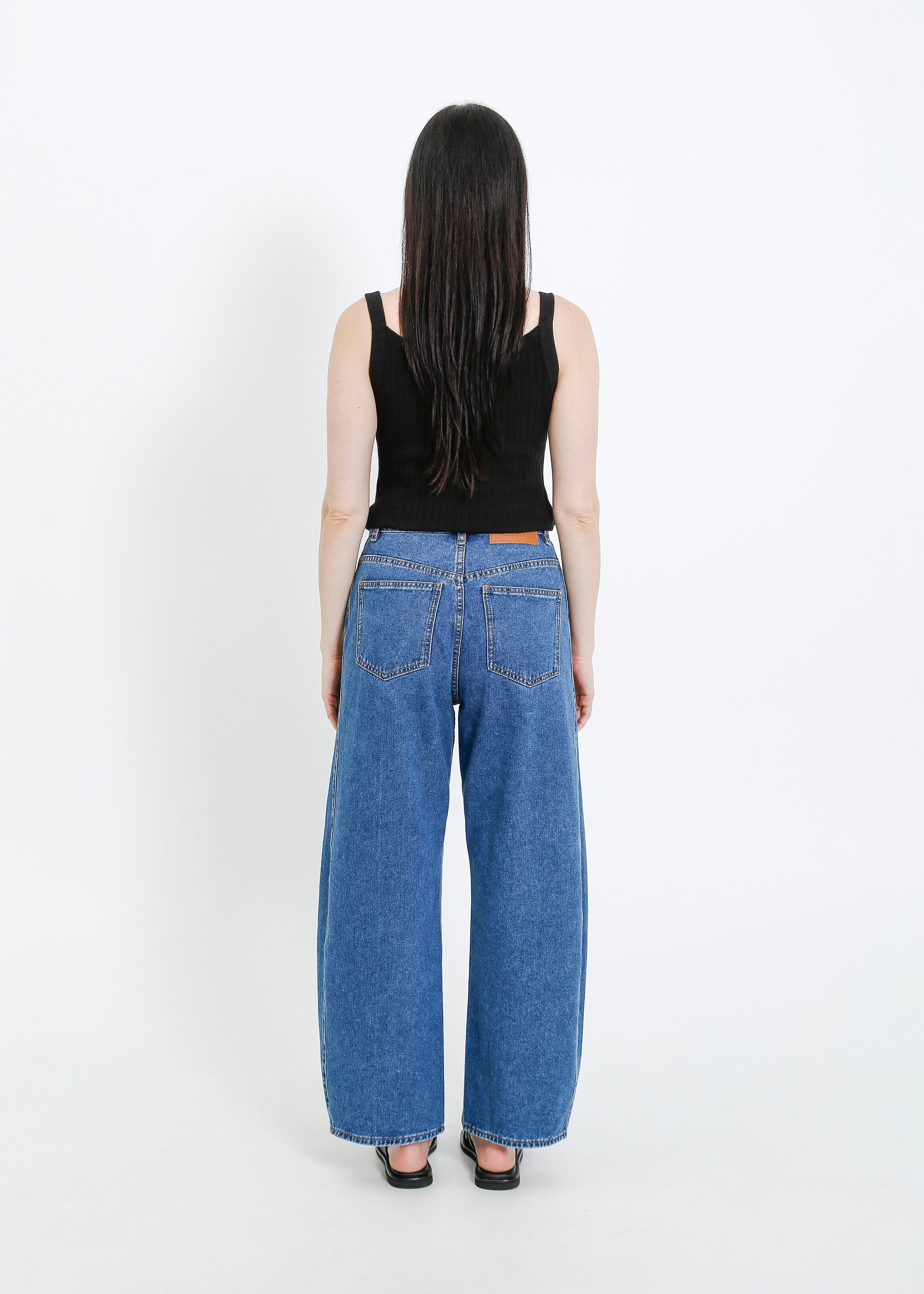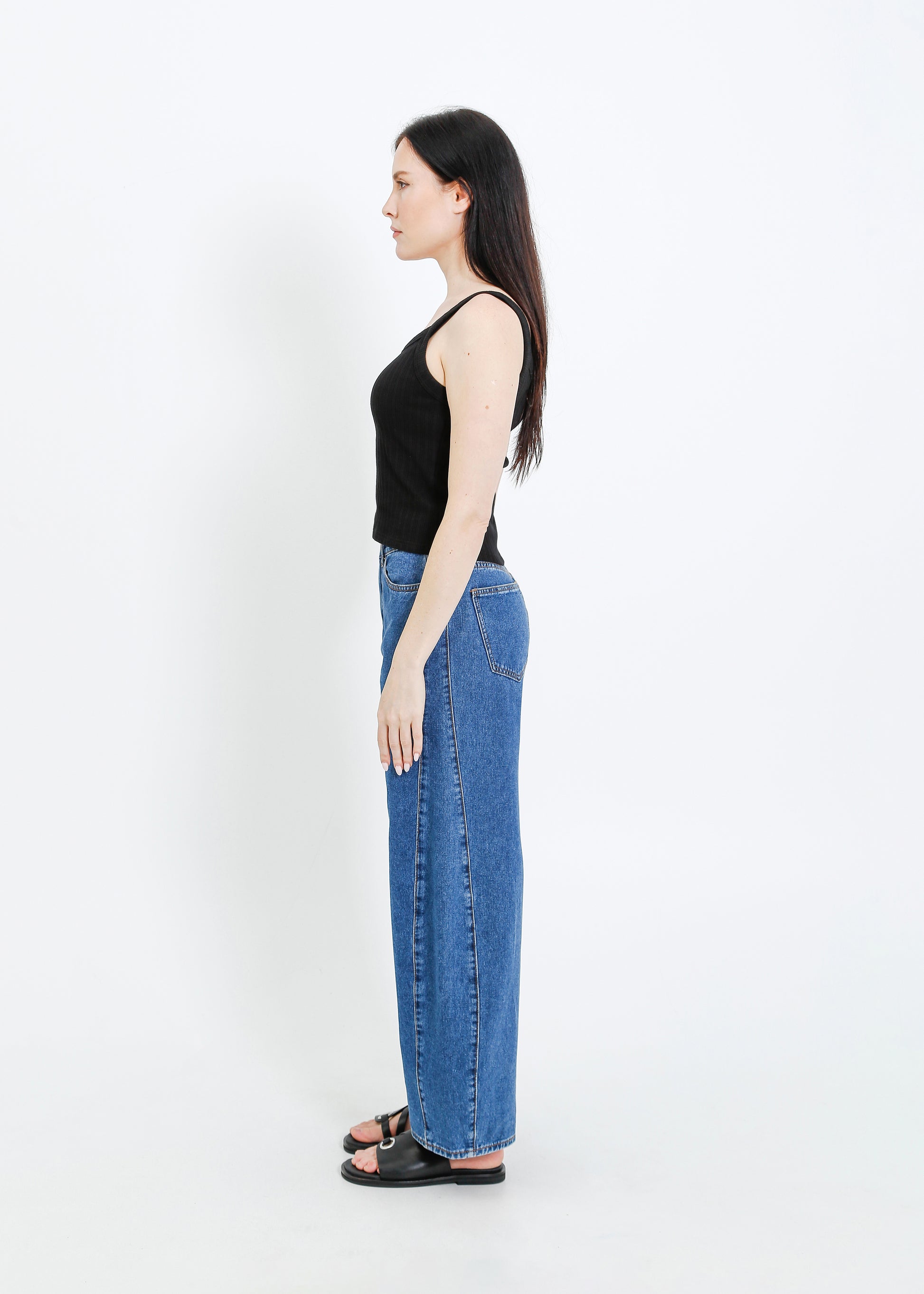 - Waist 40cm / Low hip is 53.5cm / Inner leg length is 72.5cm / Outleg length 99.5cm / Front rise is 29.5cm / Back rise is 39.5cm. Garment measures are taken flat on size S. Body width is graded 2.5cm between sizes.