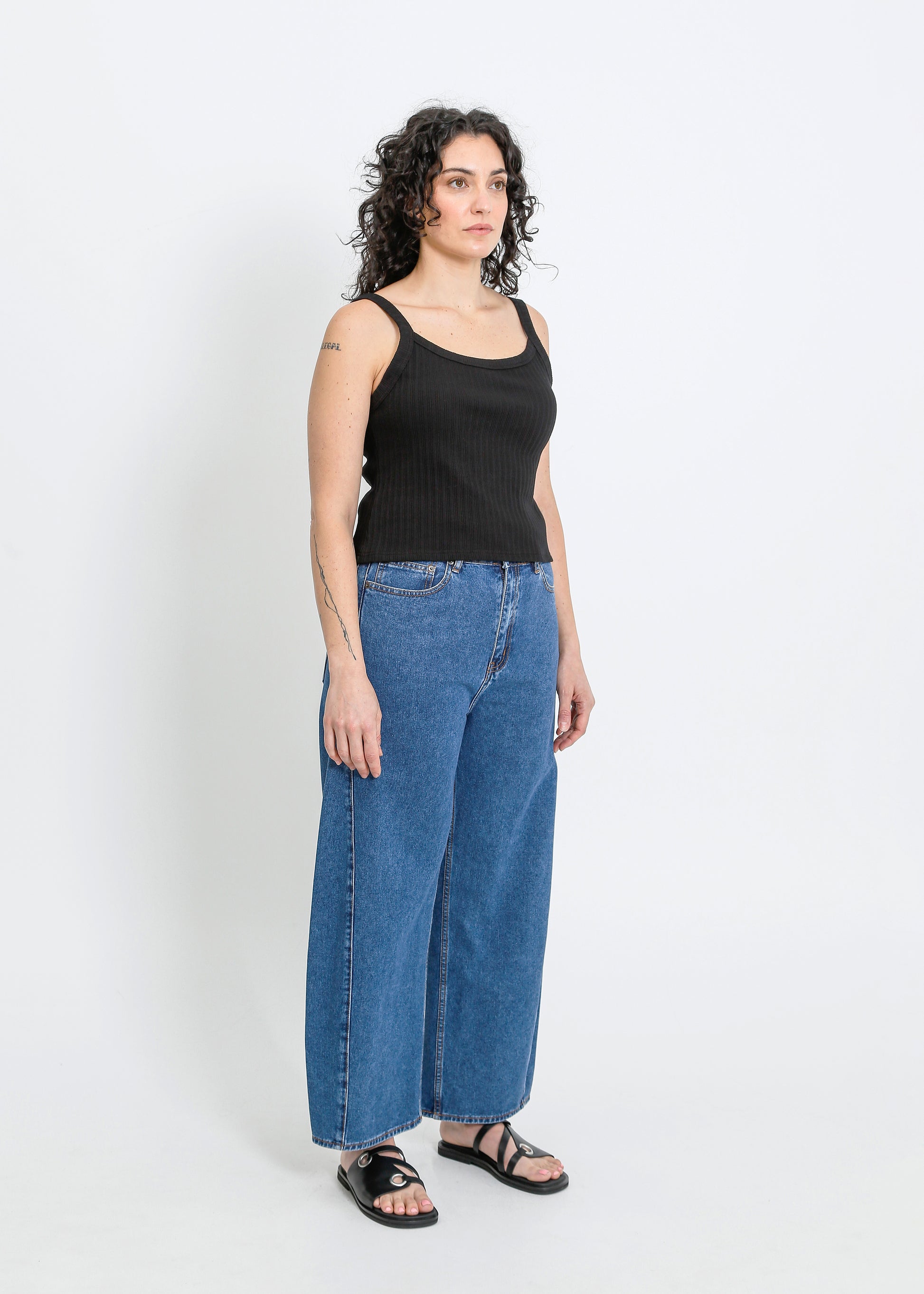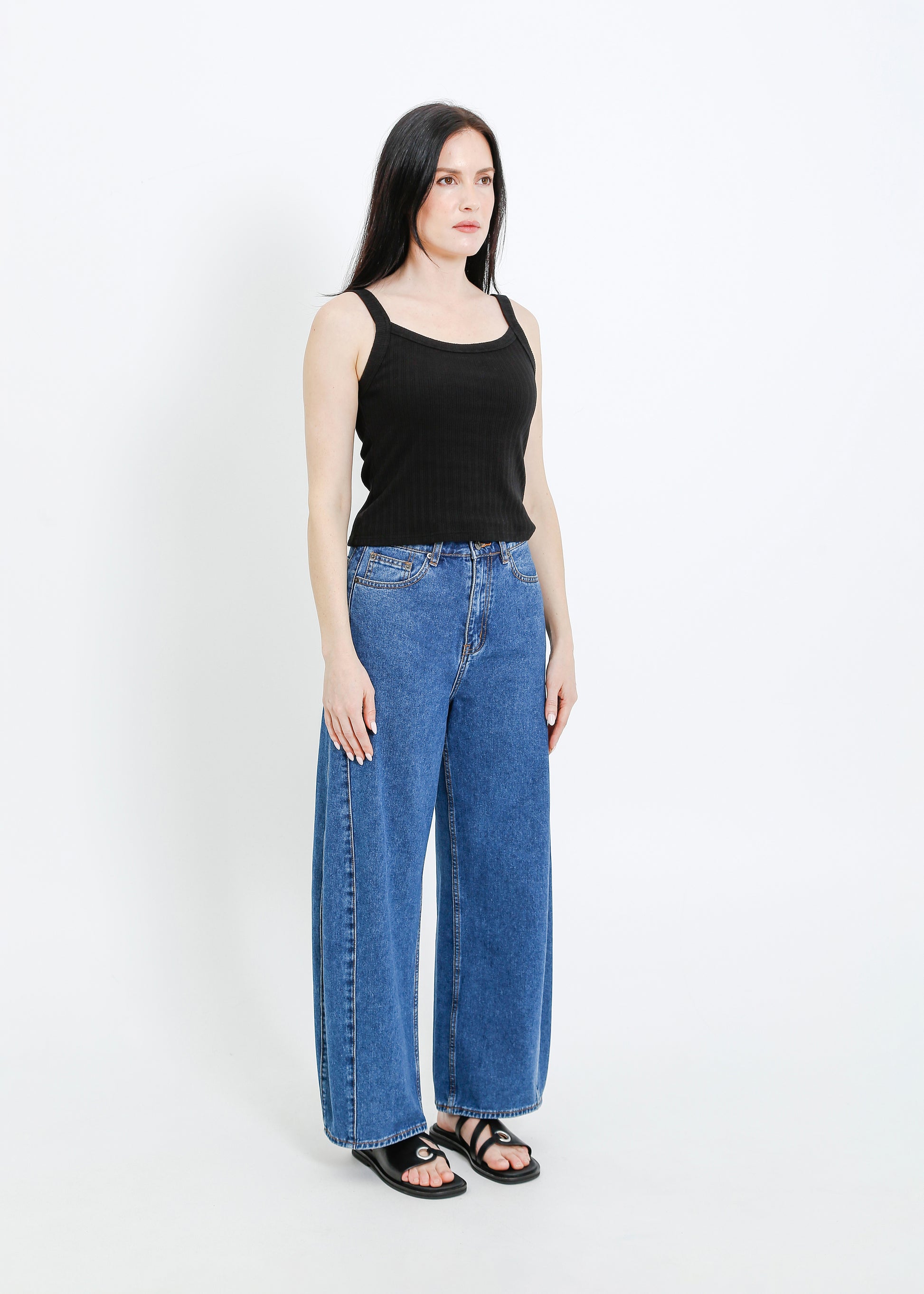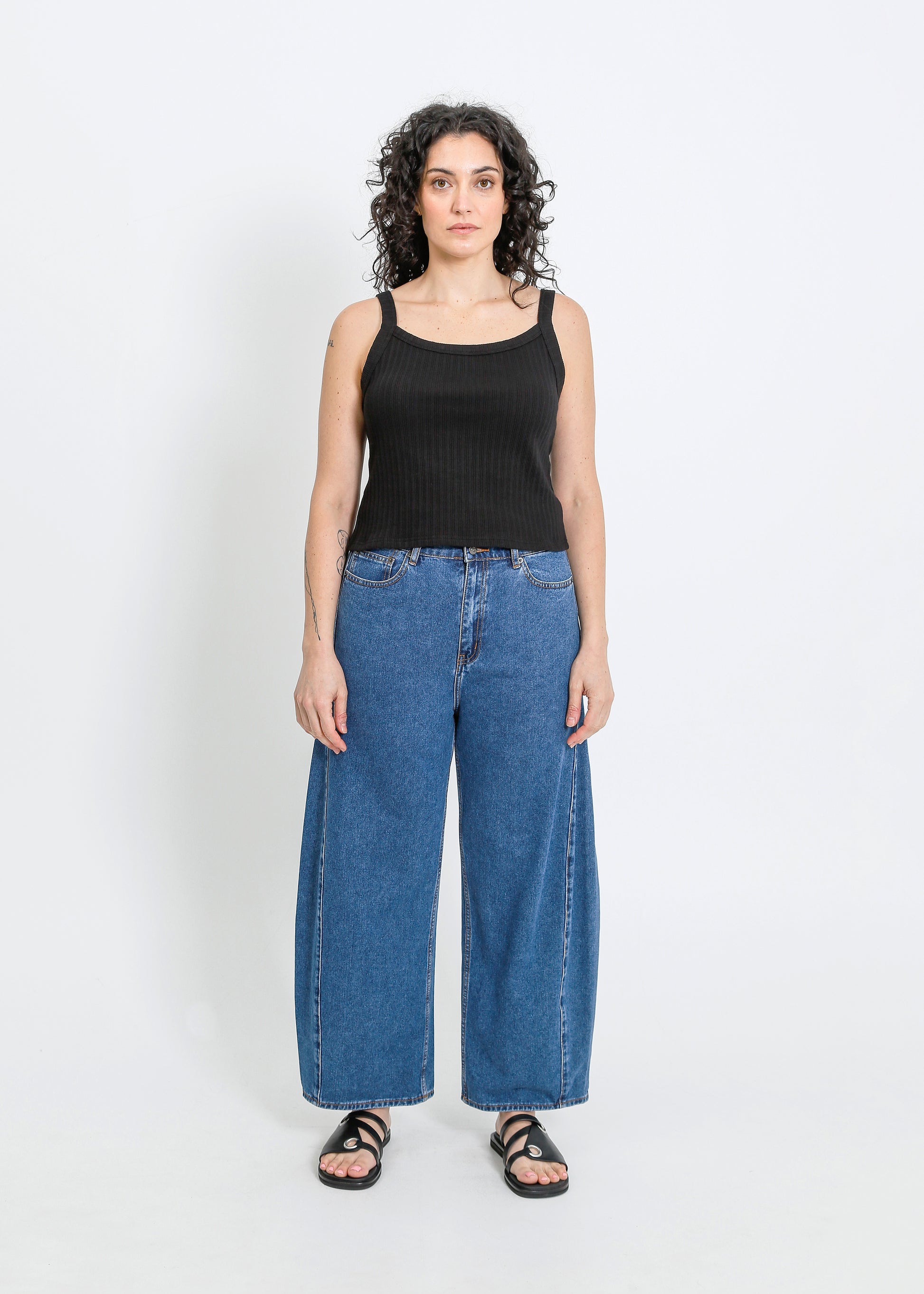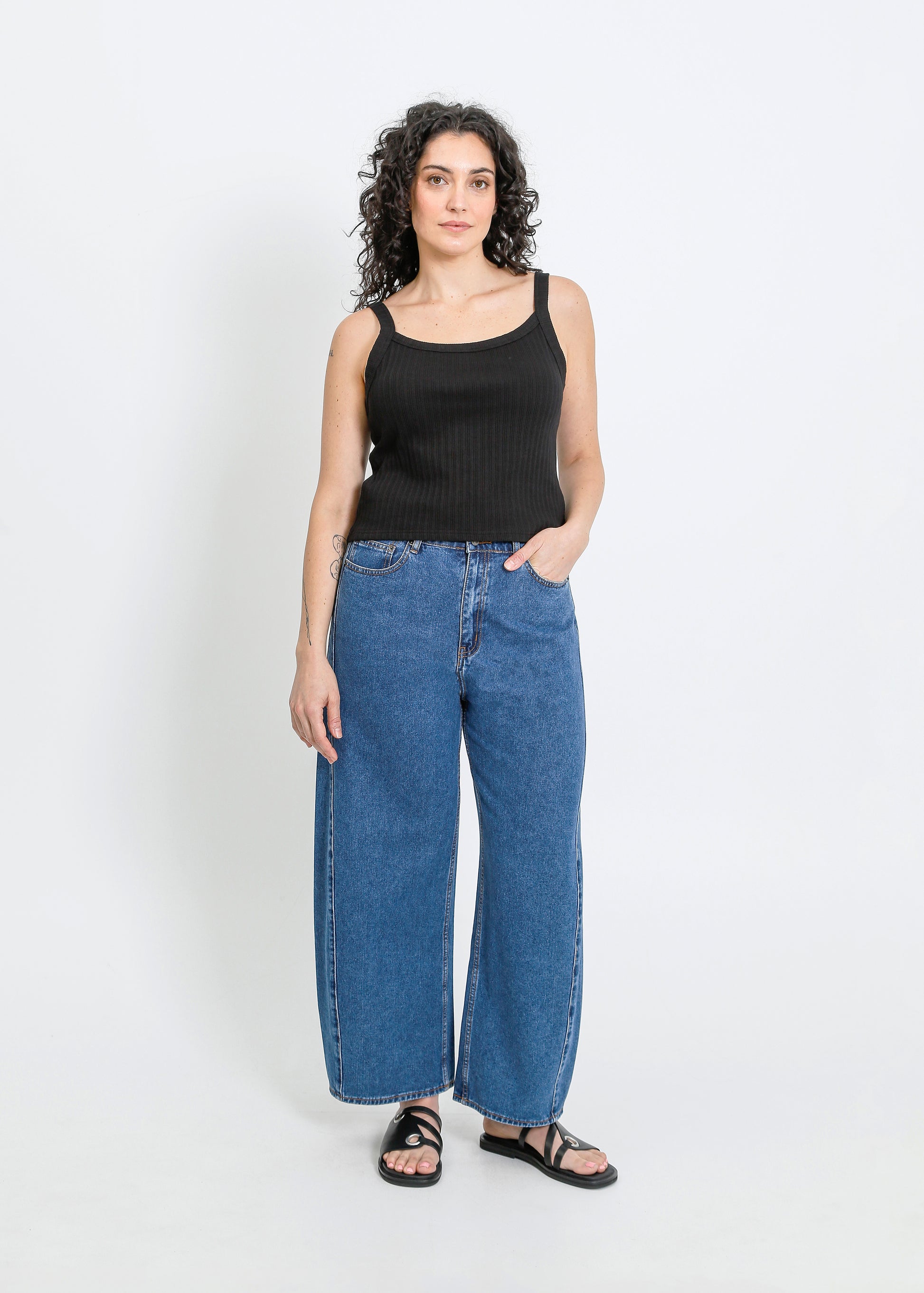 - Waist 40cm / Low hip is 53.5cm / Inner leg length is 72.5cm / Outleg length 99.5cm / Front rise is 29.5cm / Back rise is 39.5cm. Garment measures are taken flat on size S. Body width is graded 2.5cm between sizes.