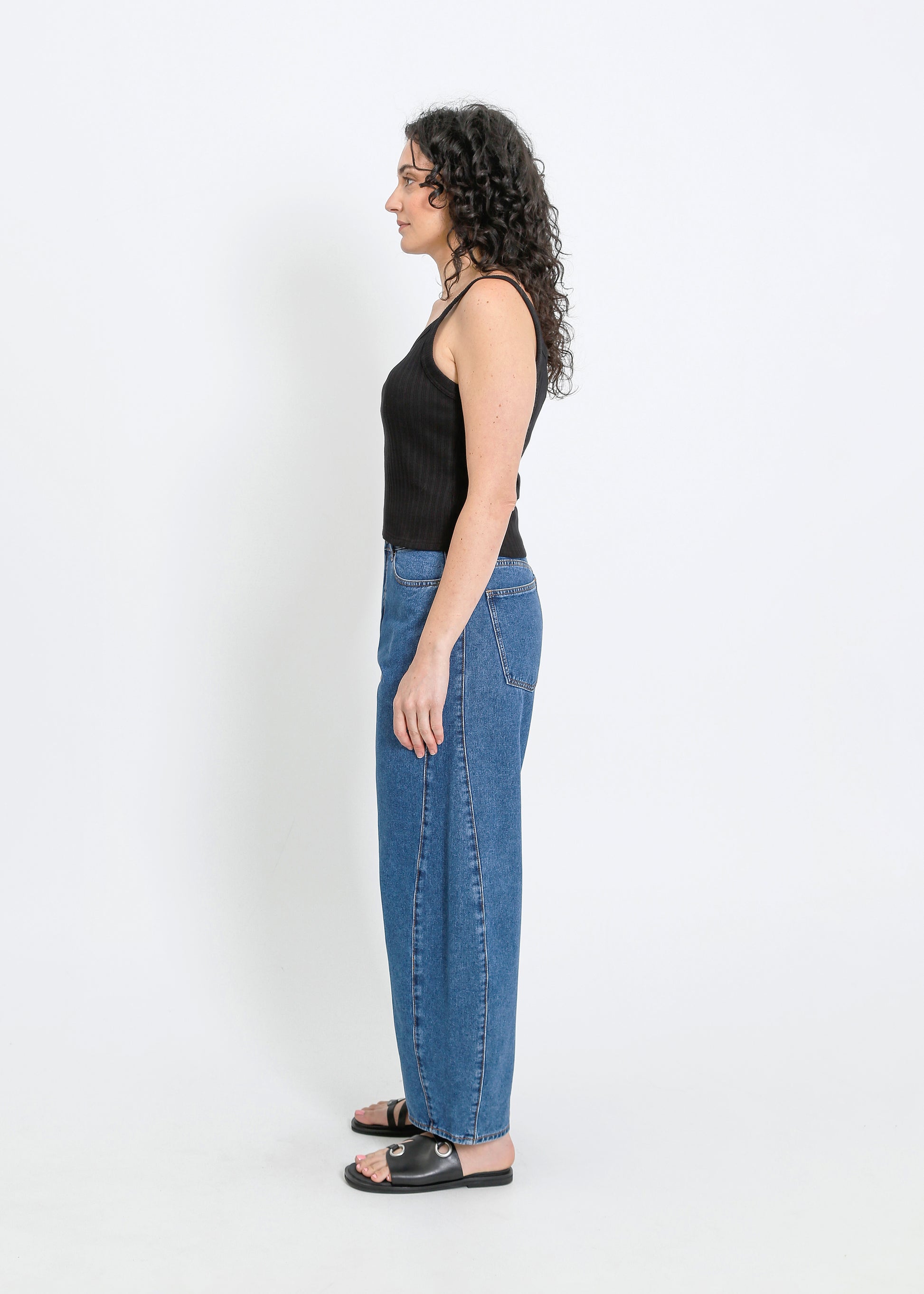 The ALPHA60 Chester Jean is a classic denim 5-pocket style, designed with a modern cocoon silhouette. Crafted from rigid denim, this mid-rise jean features ankle length and subtle side panels that create a mild cocoon shape through the leg, offering a fresh take on timeless denim.