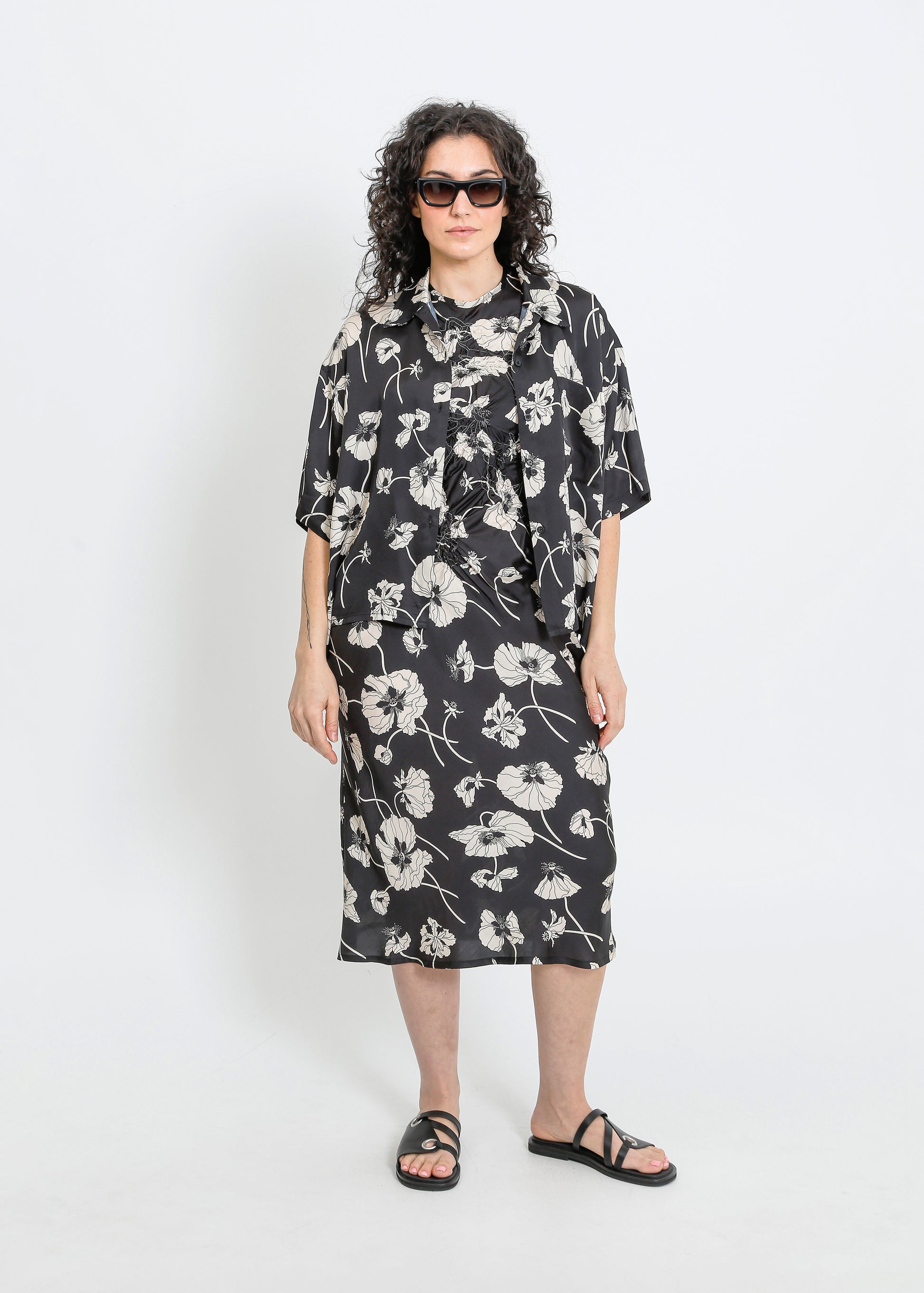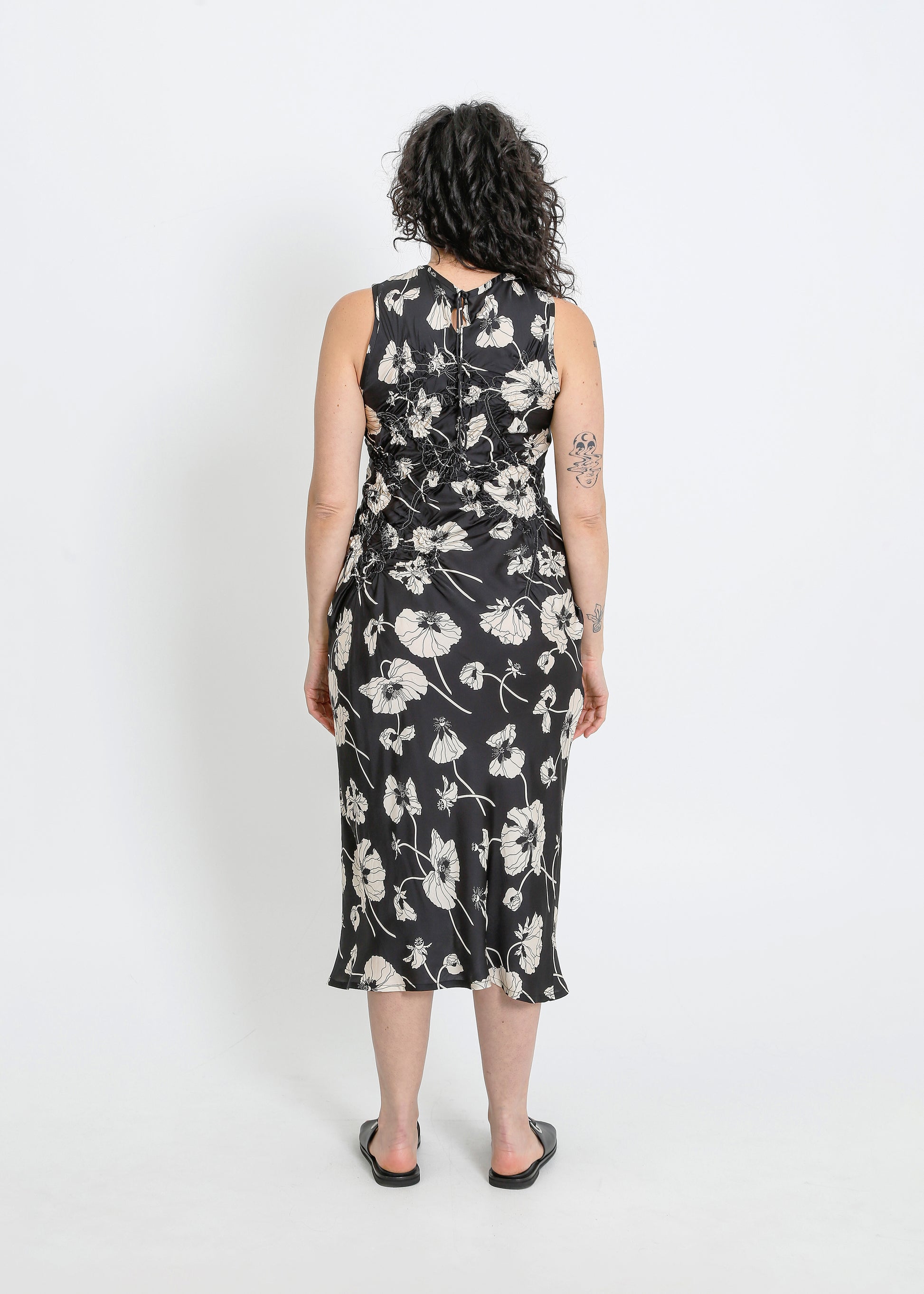 CAVALLI DRESS / FRAGILE BLOOMS - BLACK-CREAM