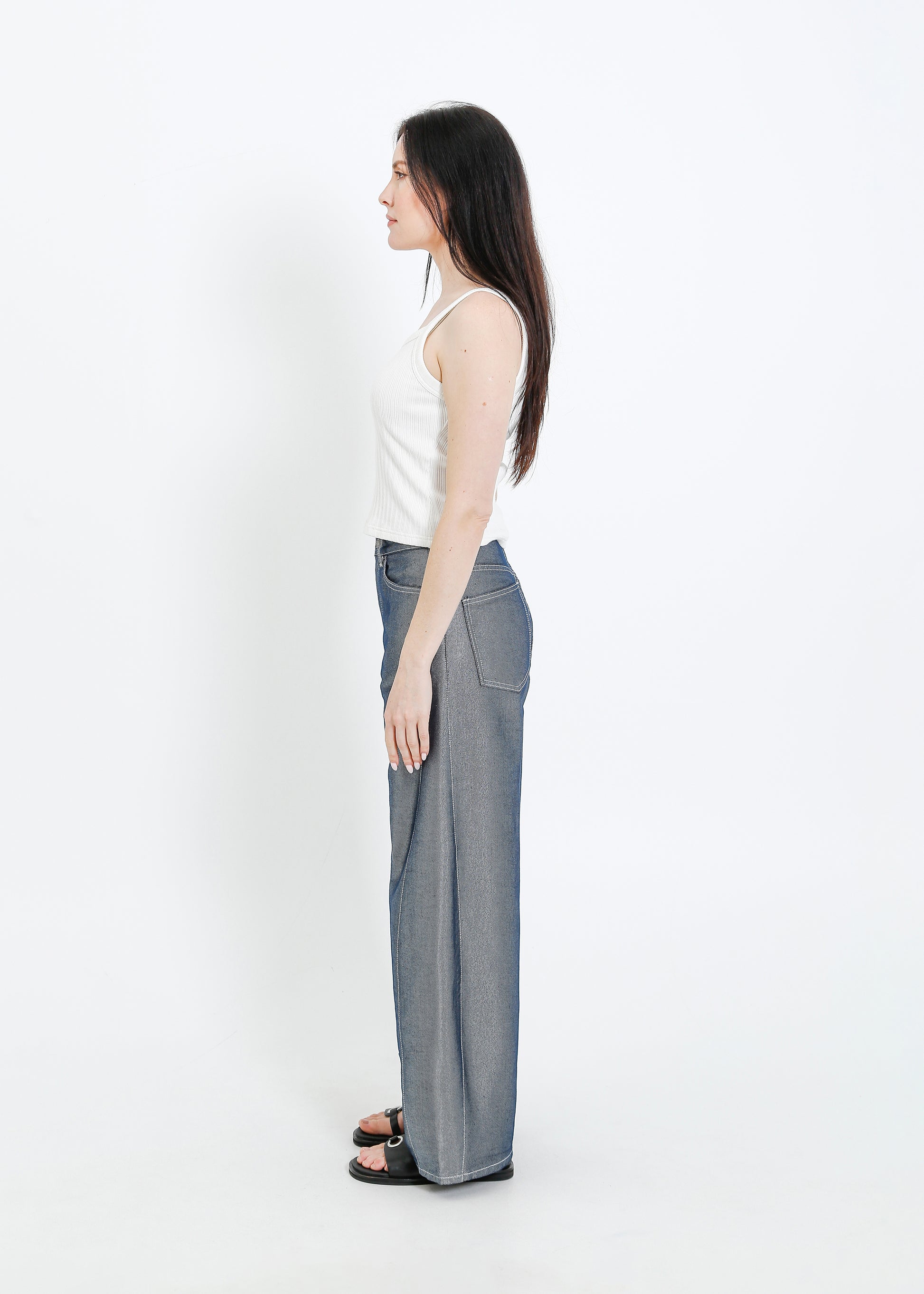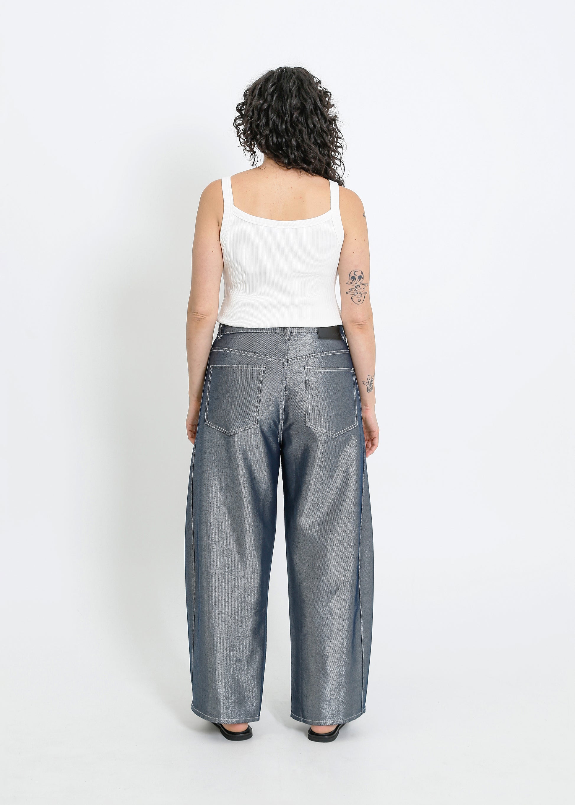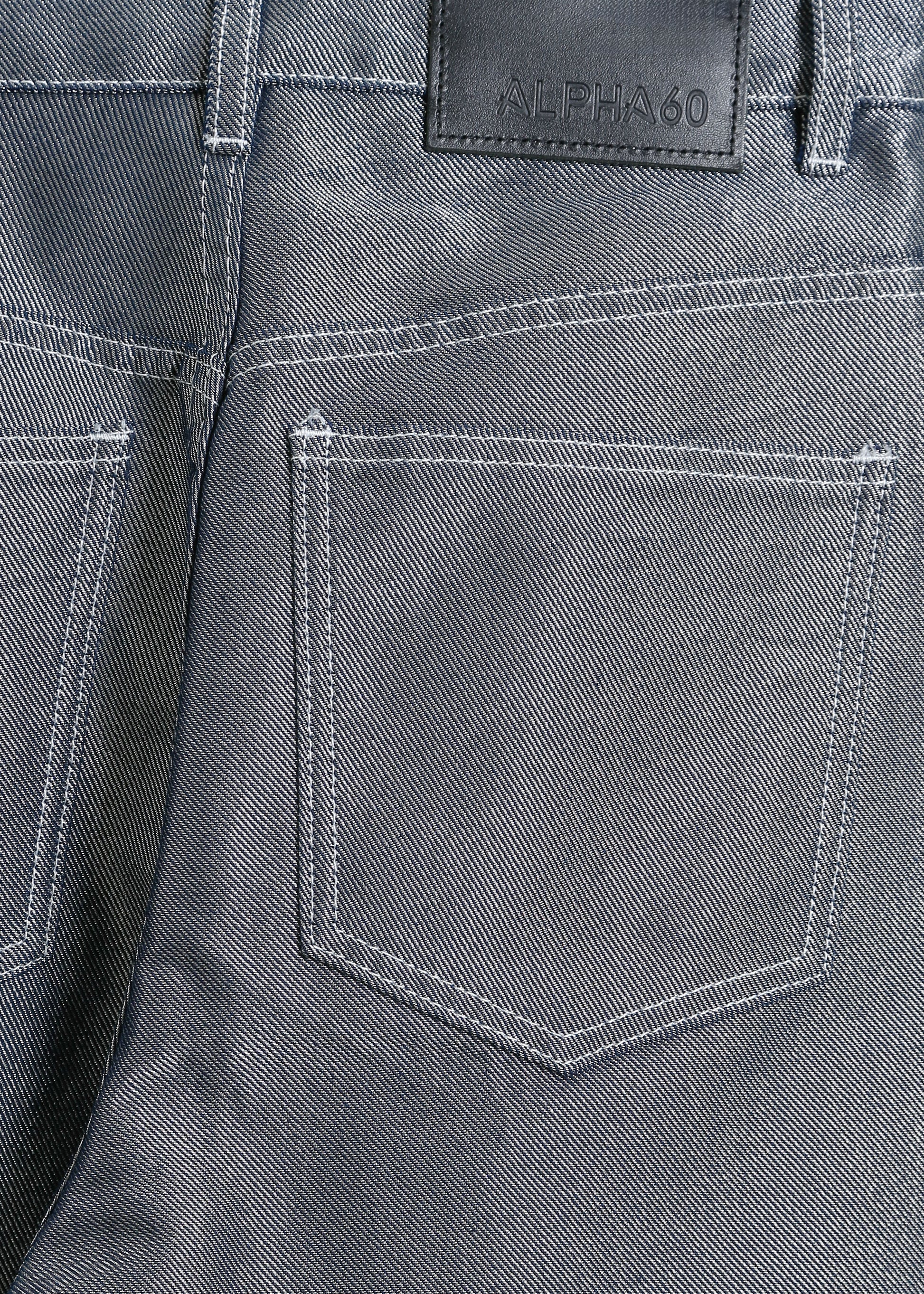The ALPHA60 Chester Jean is a modern take on classic denim, featuring a tailored silhouette with a full-length leg and a mid-rise fit. Side panels create a mild cocoon shape through the leg, offering a unique and flattering profile. Crafted in a silver-indigo wash, this jean is perfect for elevating your everyday wardrobe.