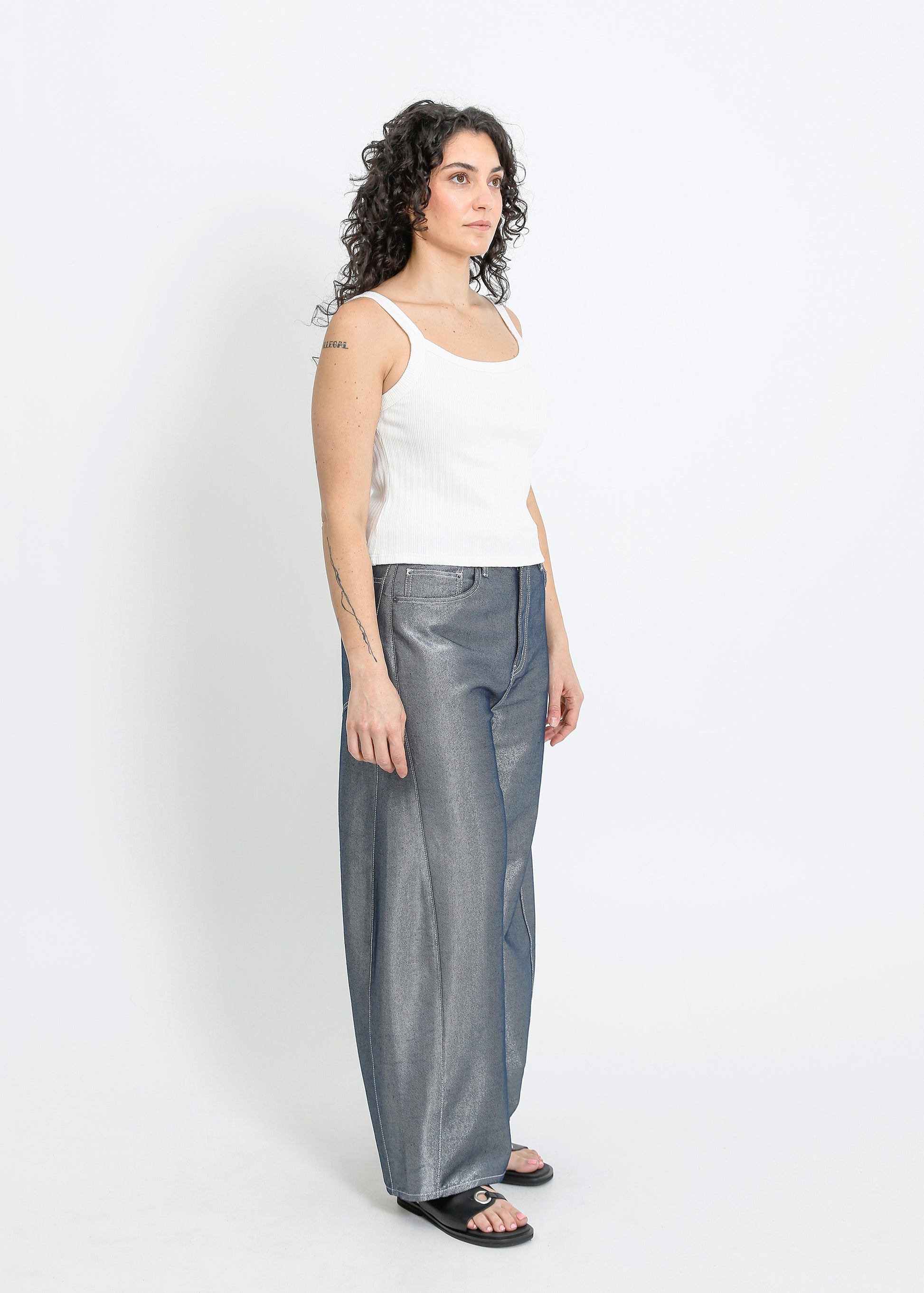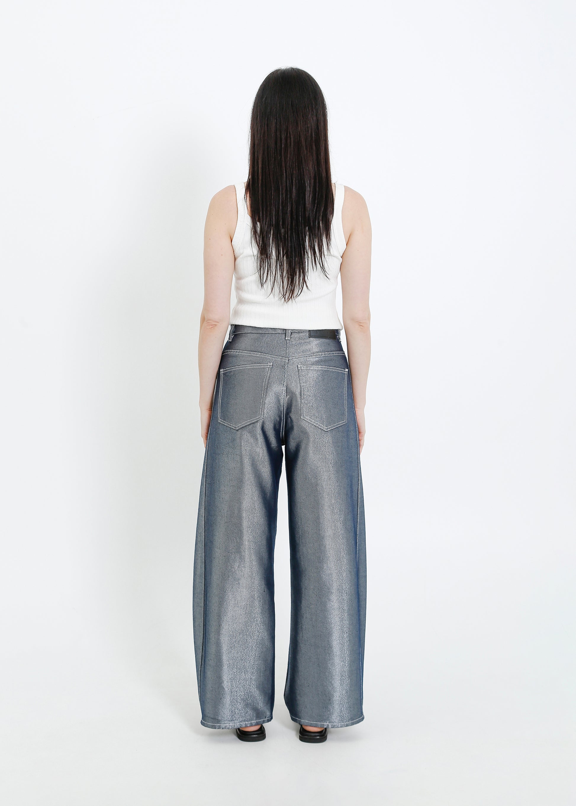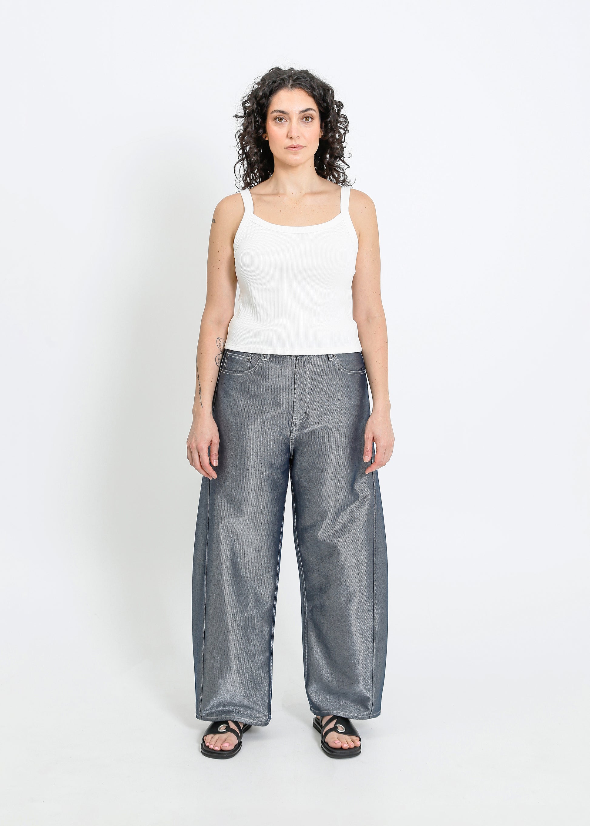 The ALPHA60 Chester Jean is a modern take on classic denim, featuring a tailored silhouette with a full-length leg and a mid-rise fit. Side panels create a mild cocoon shape through the leg, offering a unique and flattering profile. Crafted in a silver-indigo wash, this jean is perfect for elevating your everyday wardrobe.