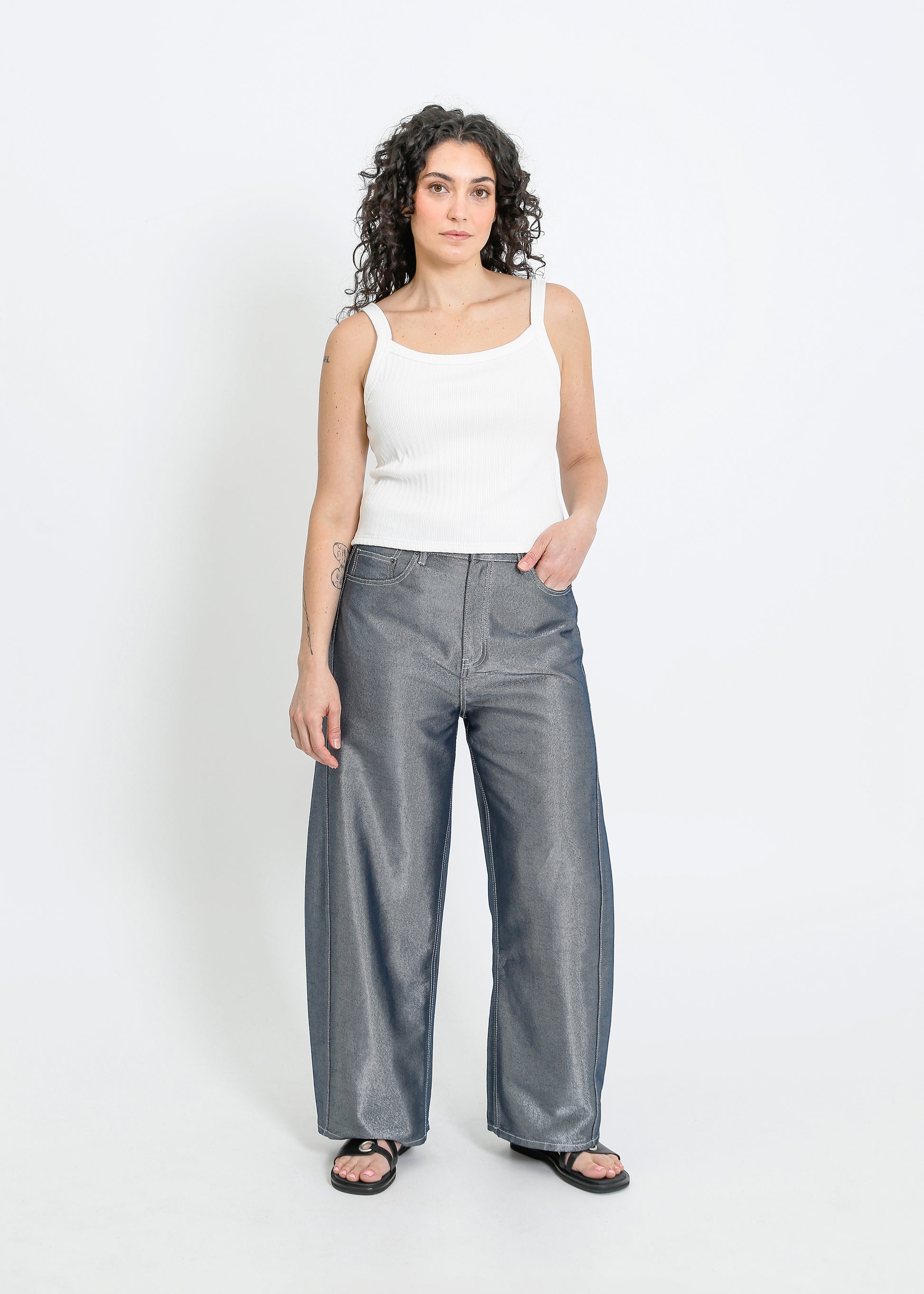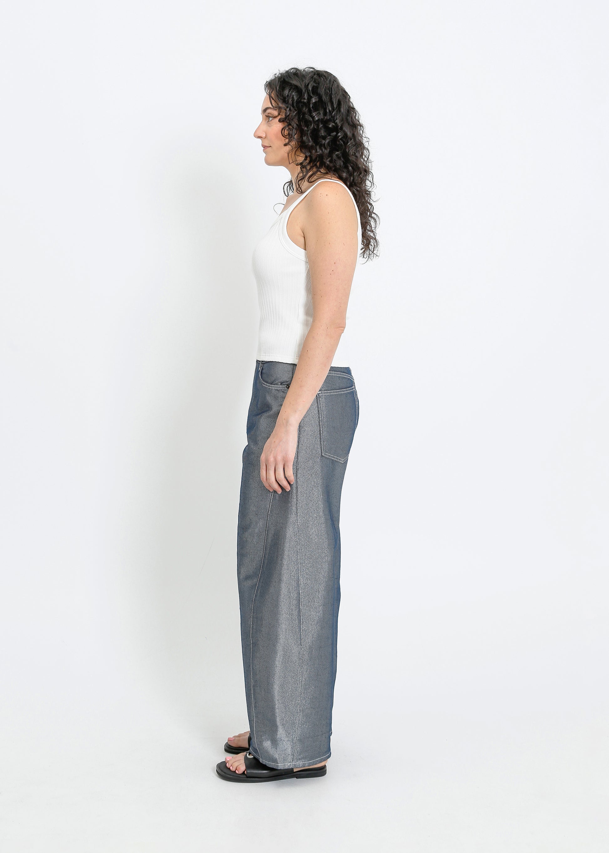 - Waist 40cm / Low hip is 53.5cm / Inner leg length is 72.5cm / Outleg length 99.5cm / Front rise is 29.5cm / Back rise is 39.5cm. Garment measures are taken flat on size S. Body width is graded 2.5cm between sizes.