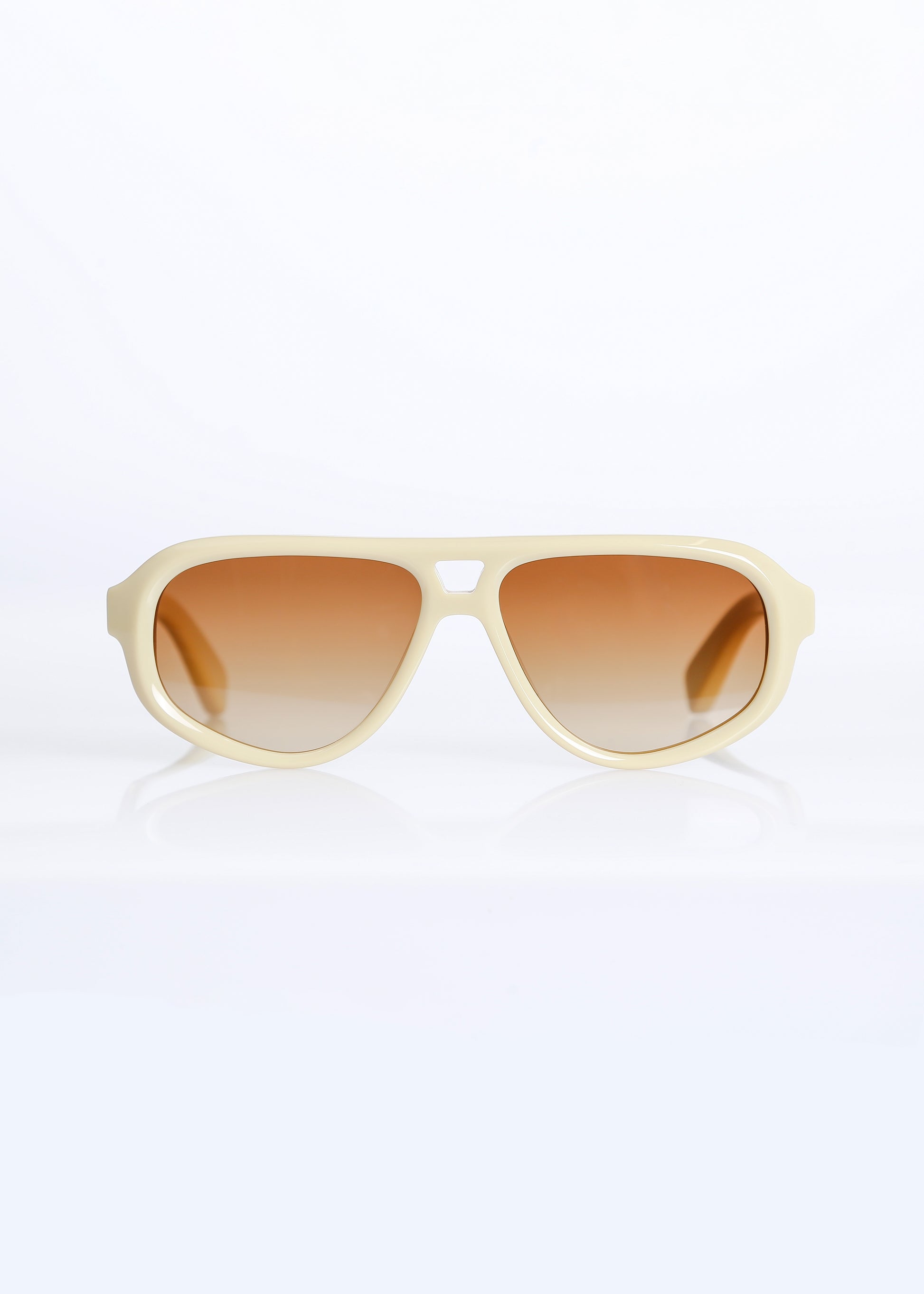 The ALPHA60 Elliot Sunglasses are an oversized navigator frame that features butter acetate detailing and arms with contrasting cream tort tips. These sunglasses are custom designed, using p...