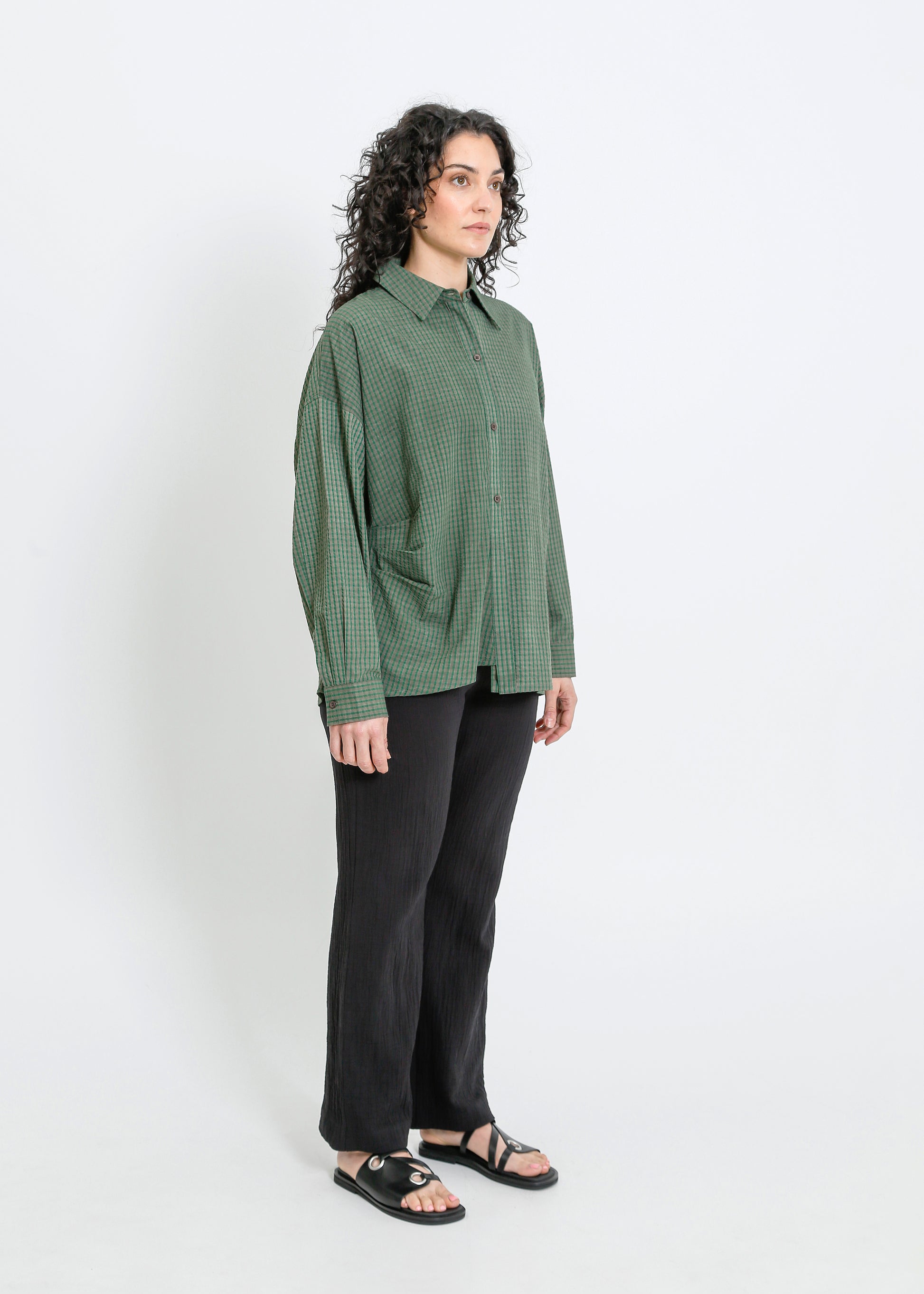 The ALPHA60 Fifer Shirt is a modern take on the classic shirt silhouette, crafted in a lightweight seersucker check fabric with a textured crinkle finish. Designed for comfort and style, this piece features a relaxed, oversized fit and unique detailing, making it a versatile addition to your wardrobe.