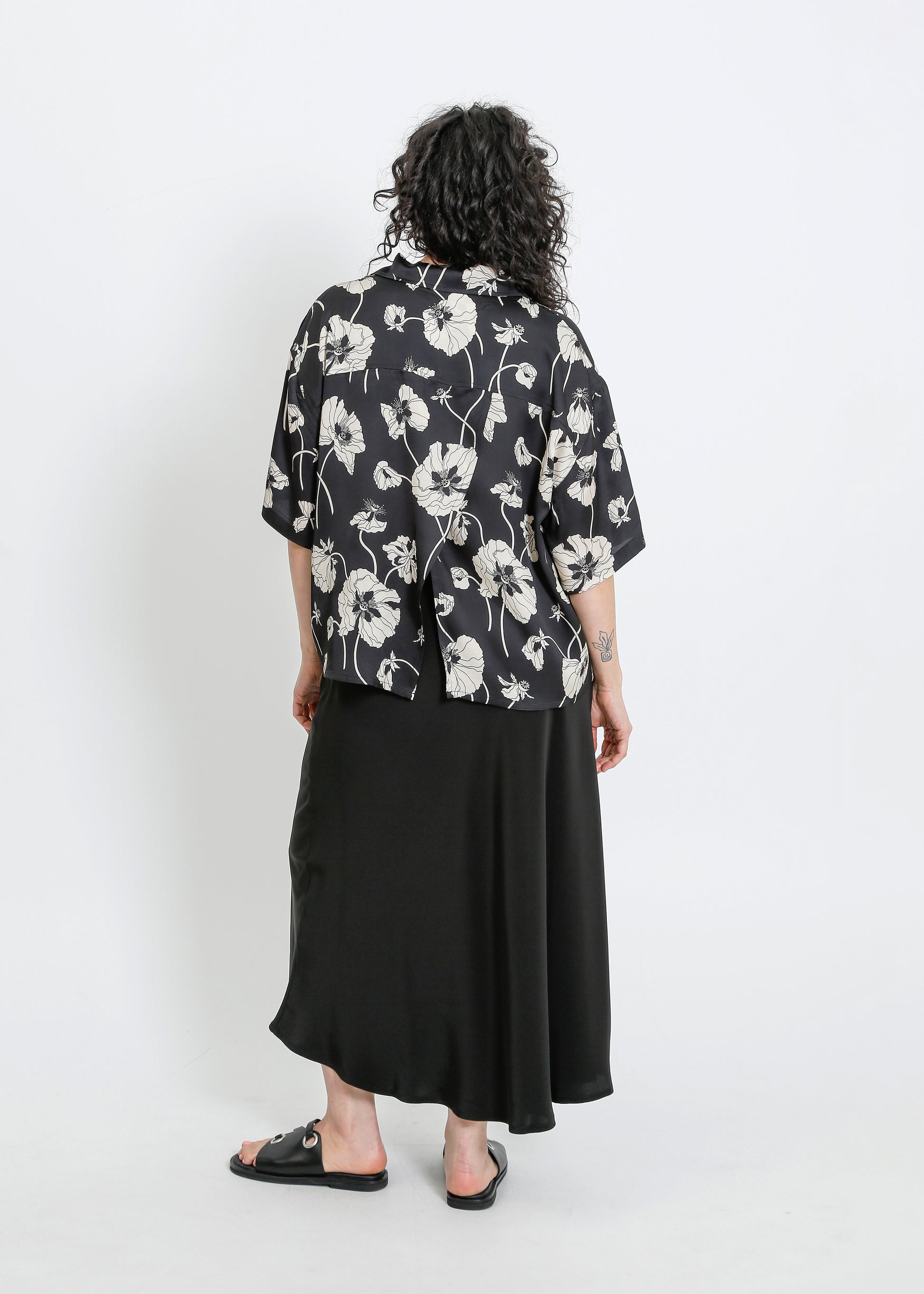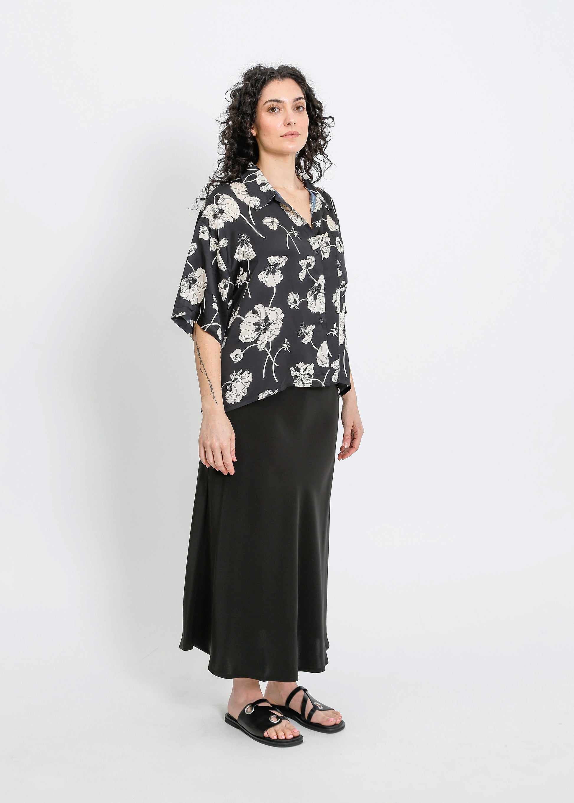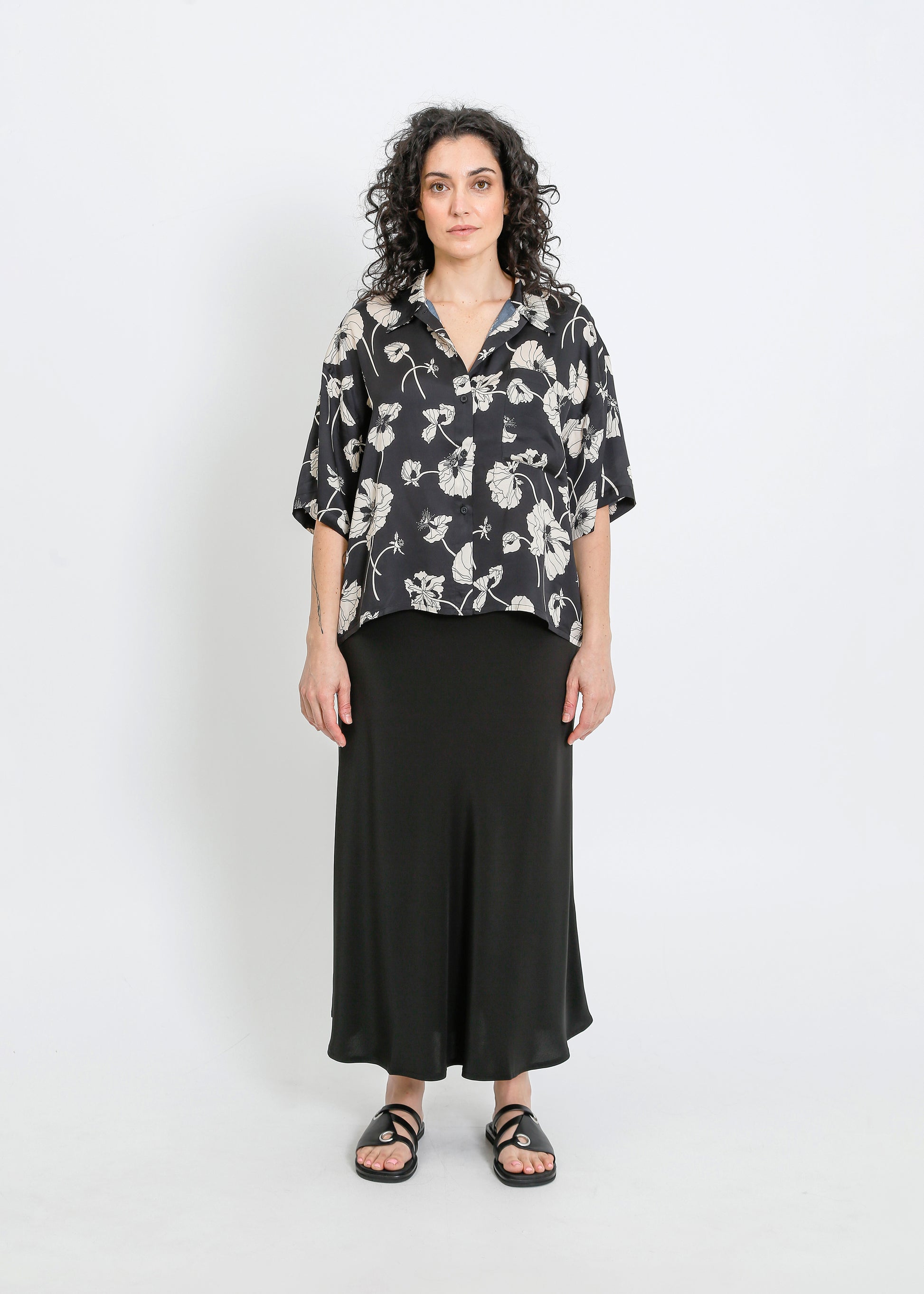 LOVE SHIRT / FRAGILE BLOOMS - BLACK-CREAM