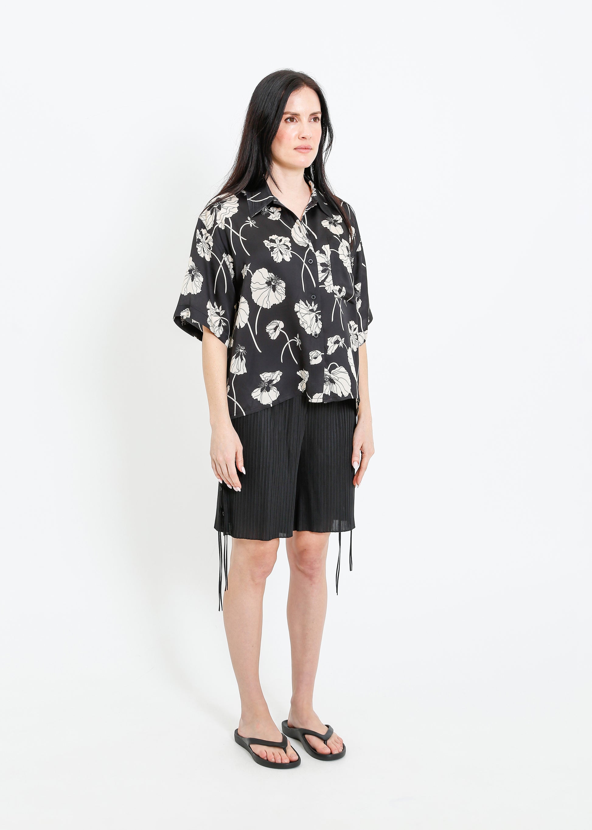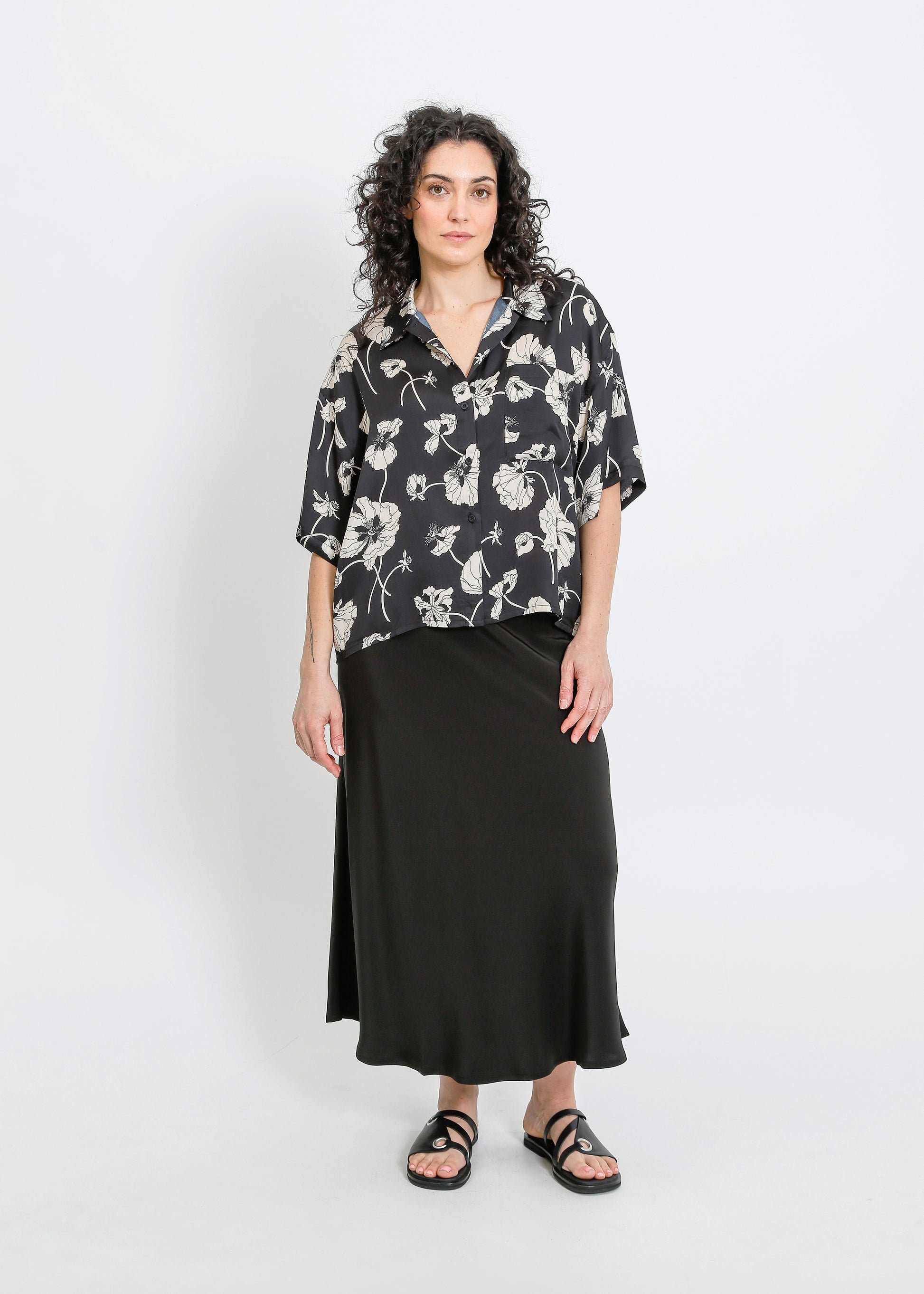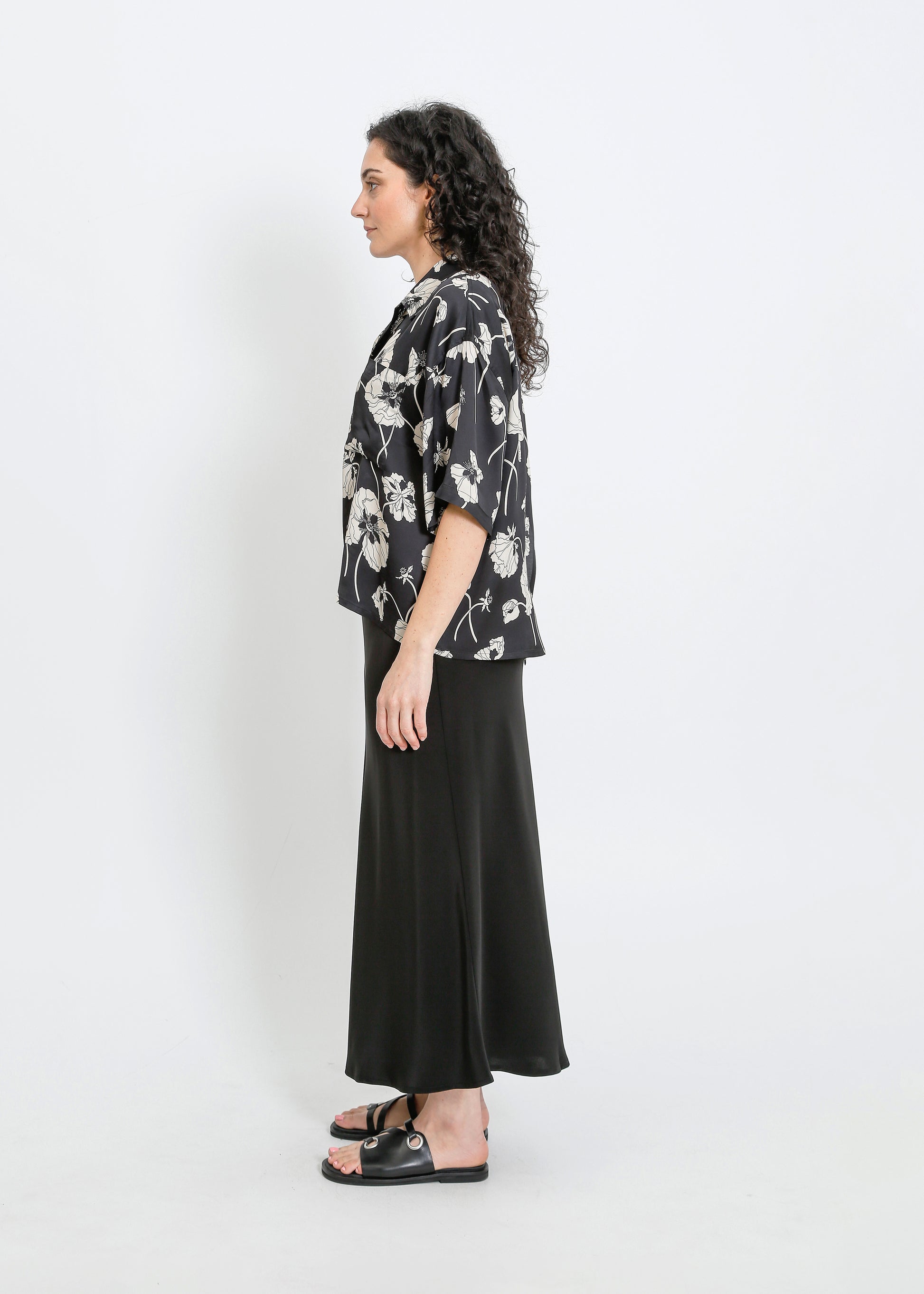 LOVE SHIRT / FRAGILE BLOOMS - BLACK-CREAM