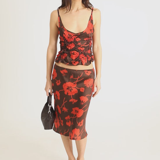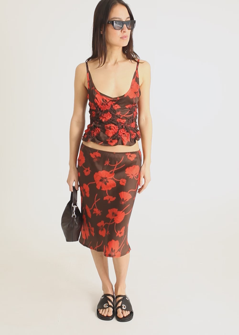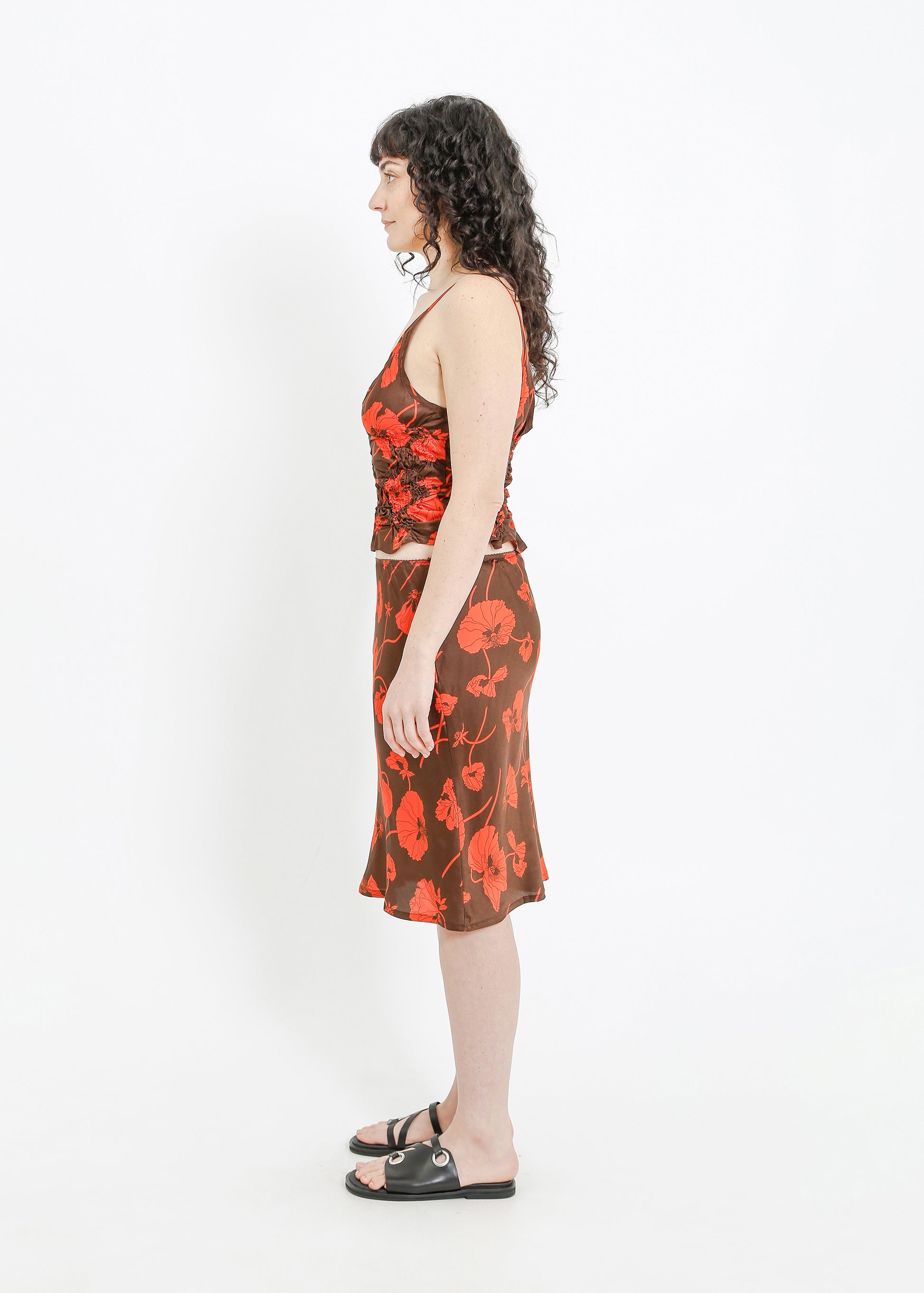 VAN SLIP SKIRT / FRAGILE BLOOMS - CHOCOLATE-POPPY