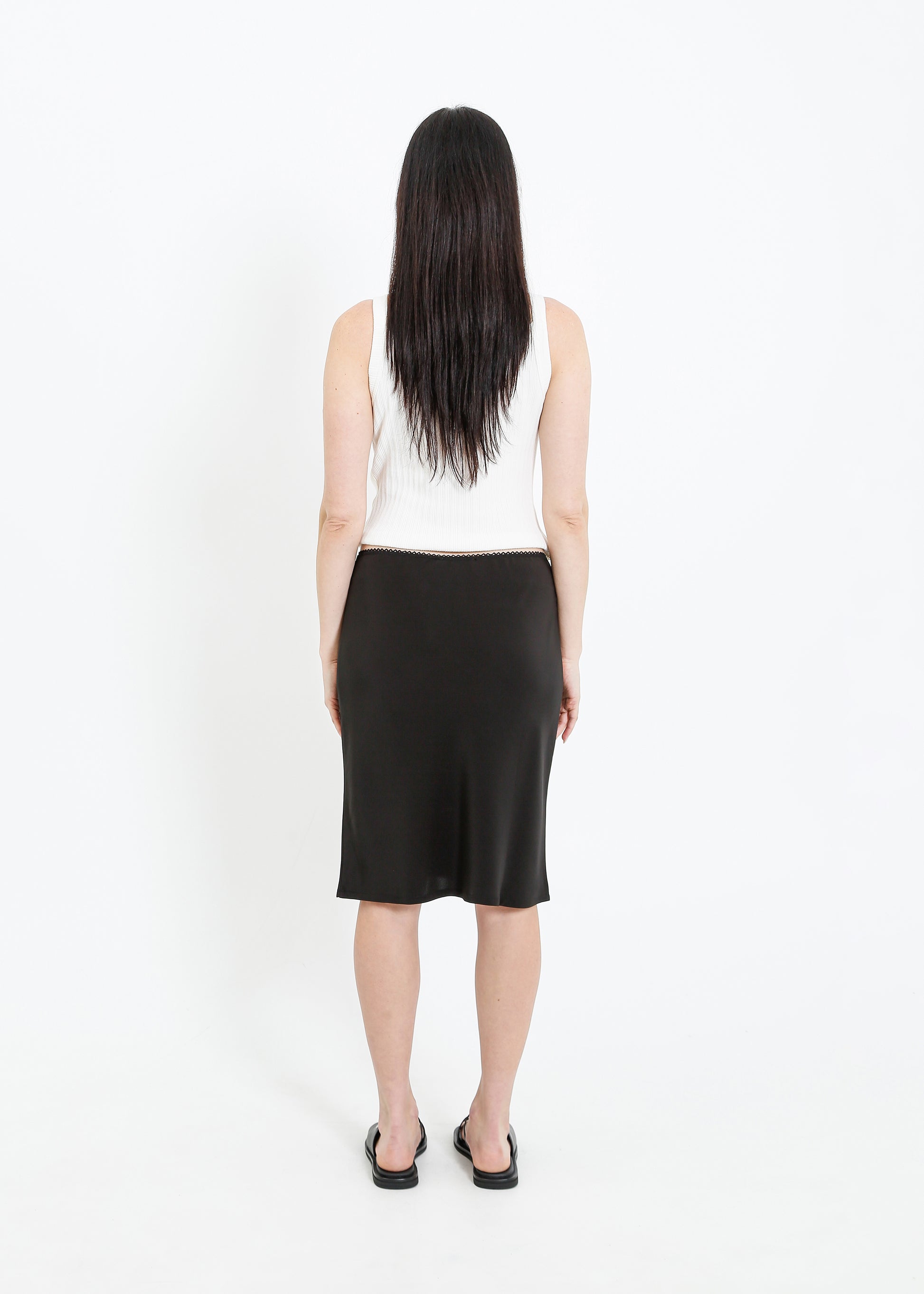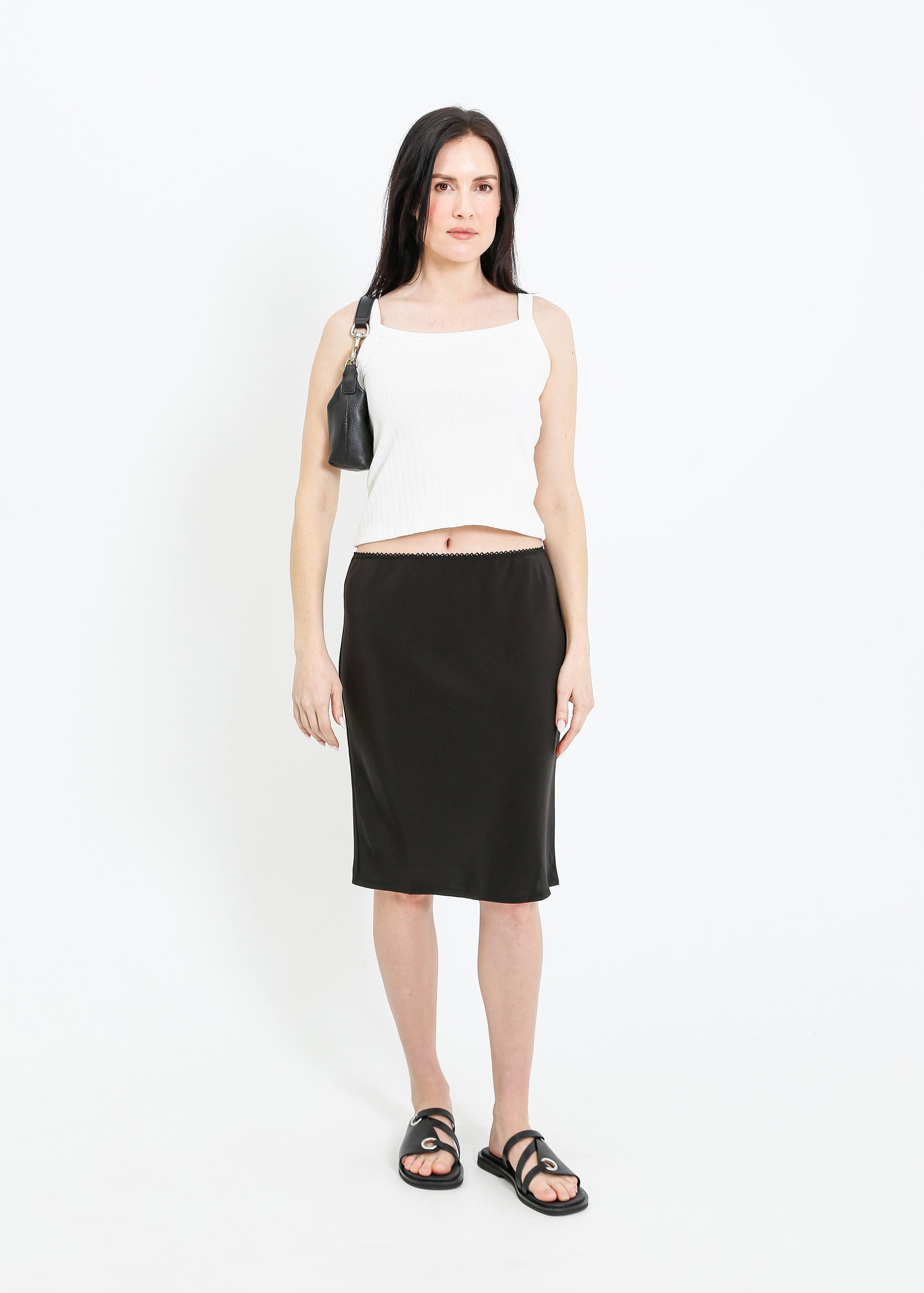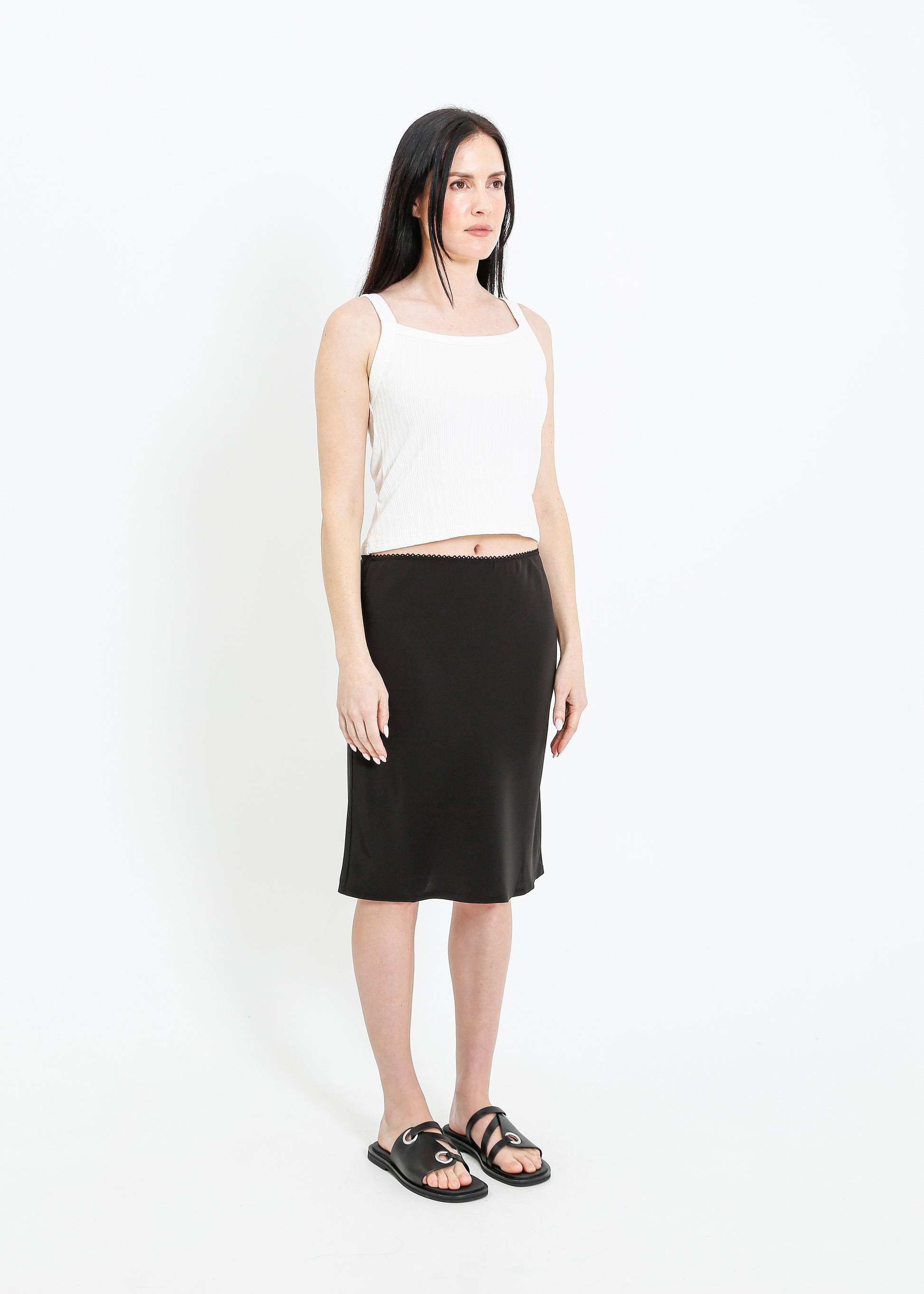 The ALPHA60 Van Slip Skirt is a modern take on the classic mini, featuring a flattering bias cut and a comfortable elasticated waistband. Designed for effortless style, this skirt is perfect for dressing up or down, making it a versatile addition to your wardrobe.